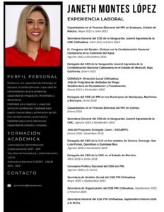 TransparenciaCurriculum y Fotografia de Janeth Montes Lopez Secretaria General del CDE PRI 2026-2030 23 marzo, 202606FacebookTwitterWhatsAppEmail