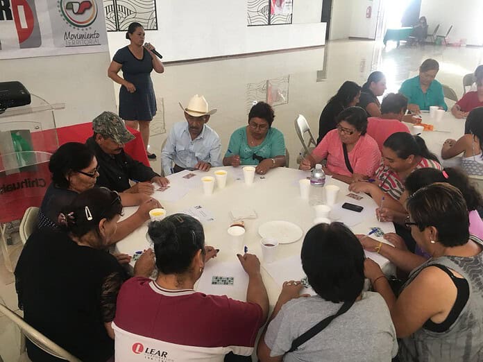 La dirigente estatal del Movimiento Territorial, Kenya Durán, encabezó hoy la “tarde de Bingo” como parte del programa de actividades que esta organización del PRI estatal realiza para promover la convivencia familiar.