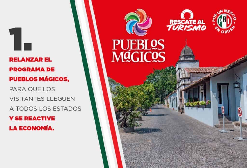 1. Relanzar el Programa de Pueblos Mágicos. Cuando la situación sanitaria lo permita, proponemos relanzar el programa de Pueblos Mágicos para darle más difusión a estos destinos y promover el turismo nacional. El turismo tiene que ser parte de la reactivación económica.