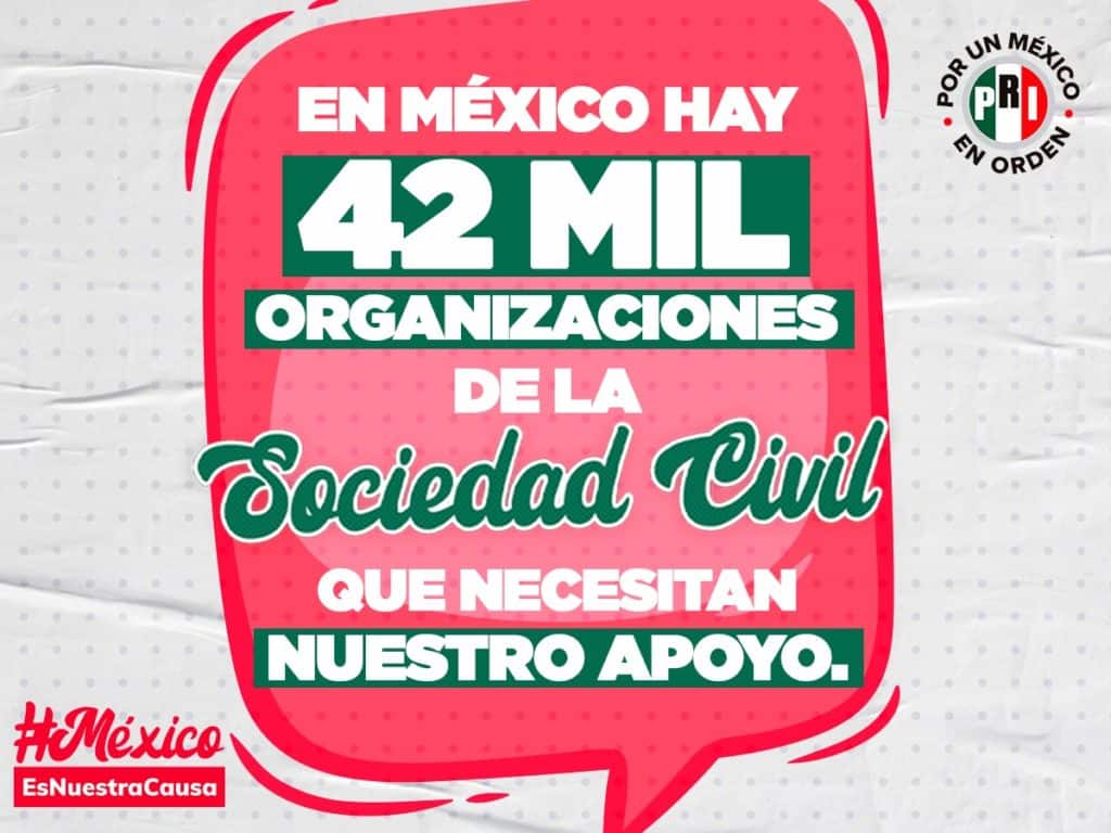 En sus redes sociales, el instituto político indicó que, de acuerdo con datos oficiales, en nuestro país existen más de 42 mil Organizaciones de la Sociedad Civil que juegan un papel muy importante apoyando a todos los niveles de gobierno. Su trabajo, apuntó, abarca los sectores de salud, educación, derechos humanos, medio ambiente, cultura, entre otros.