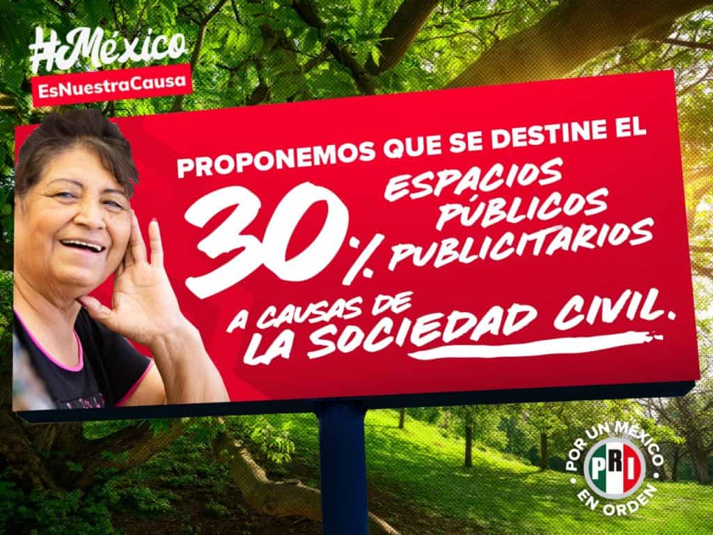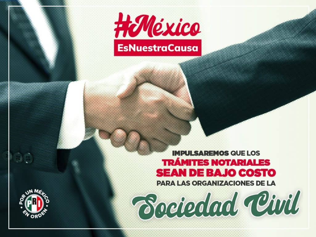 Por ello, el PRI plantea destinar el 30% de los espacios públicos publicitarios, así como los espacios oficiales en radio y televisión para la difusión de su labor, establecer Oficinas de Atención y Fomento a las Organizaciones de la Sociedad Civil; así como que se les exente el pago de impuestos como: predial, agua y adquisición de muebles e inmuebles para su buen funcionamiento.