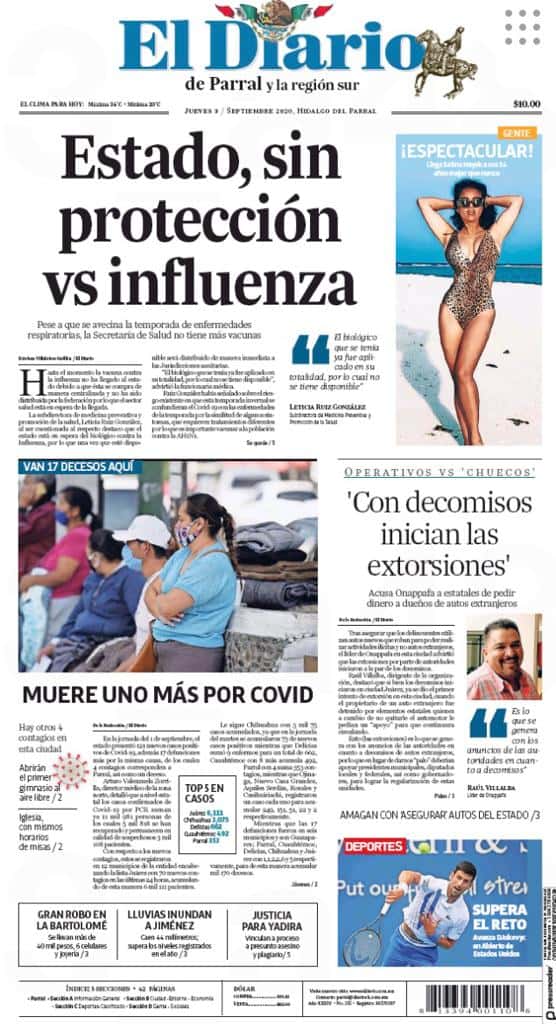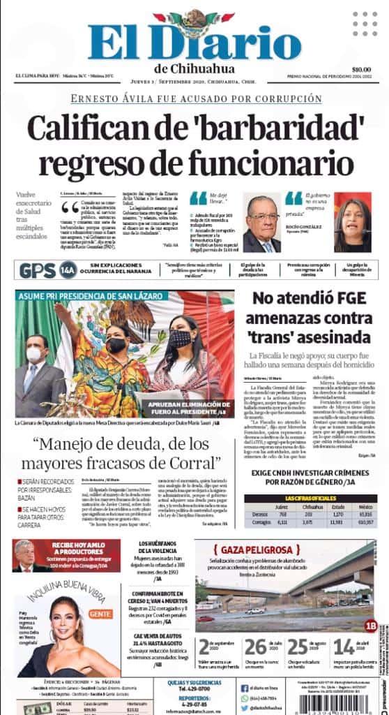 Portadas y Columnas políticas de hoy Primeras planas locales / 03 de septiembre 2020 3 septiembre, 2020 0 447 FacebookTwitterWhatsAppEmail