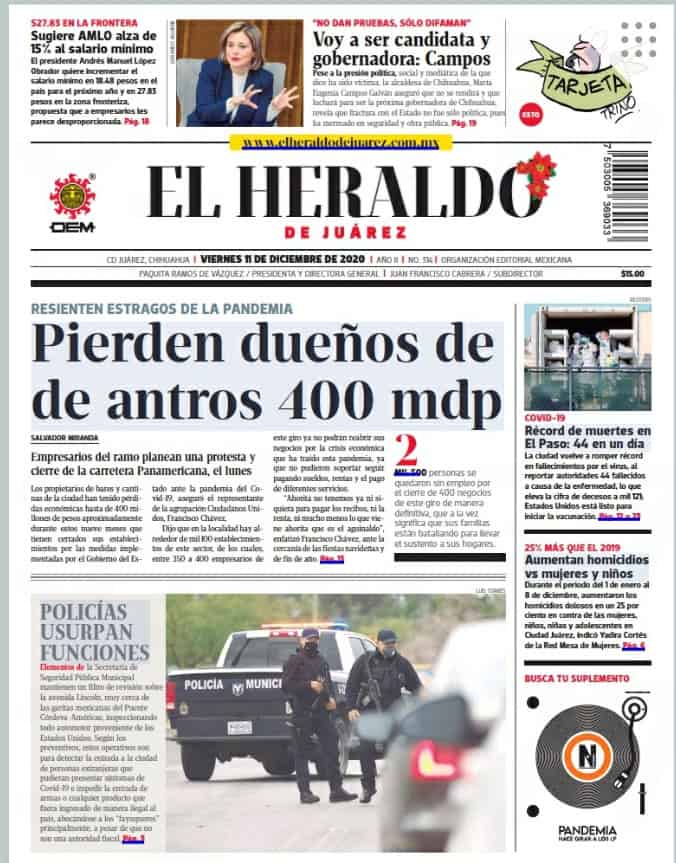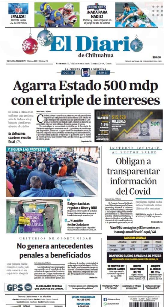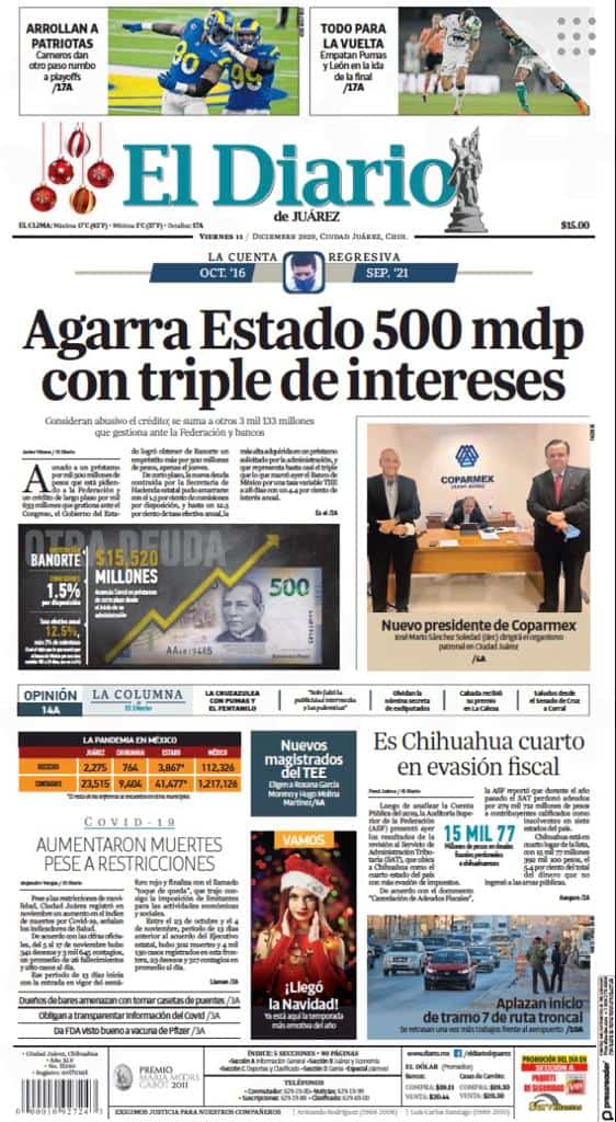Portadas y Columnas políticas de hoyPrimeras planas locales / 11 de diciembre 2020 11 diciembre, 20200439FacebookTwitterWhatsAppEmail