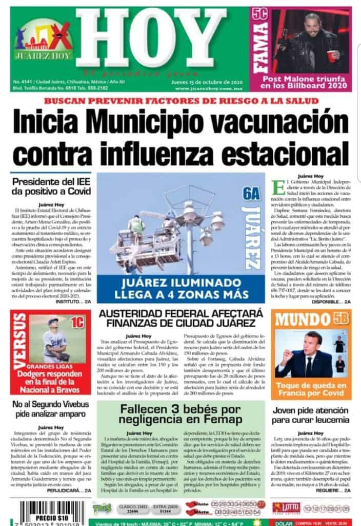 Portadas y Columnas políticas de hoyPrimeras planas locales / 15 de octubre 2020 15 octubre, 20200433FacebookTwitterWhatsAppEmail