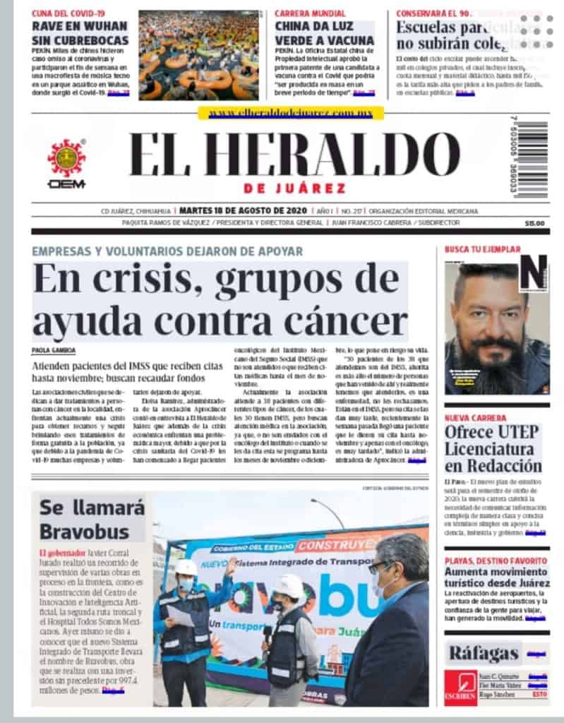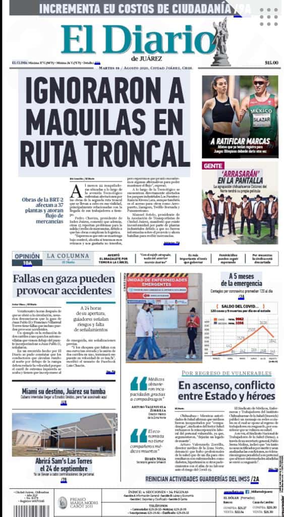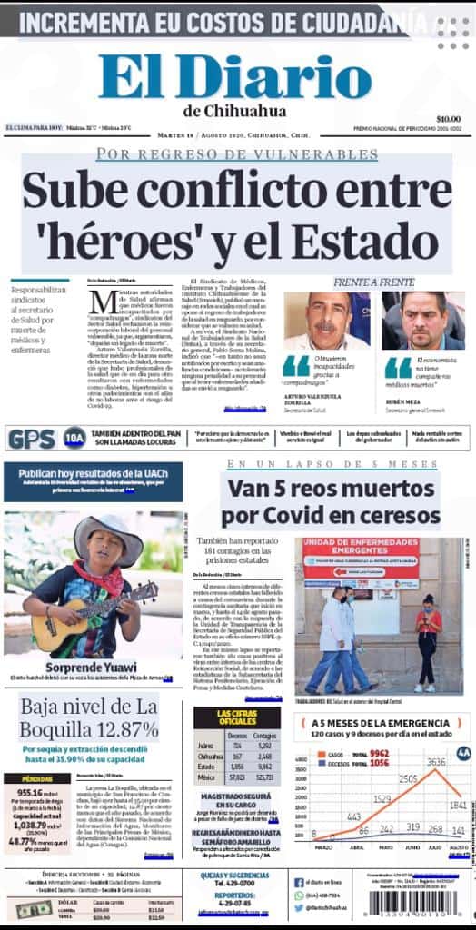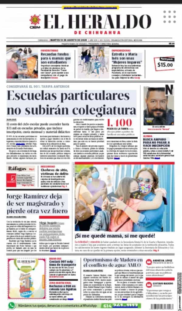 Primeras planas locales 18 de agosto 2020