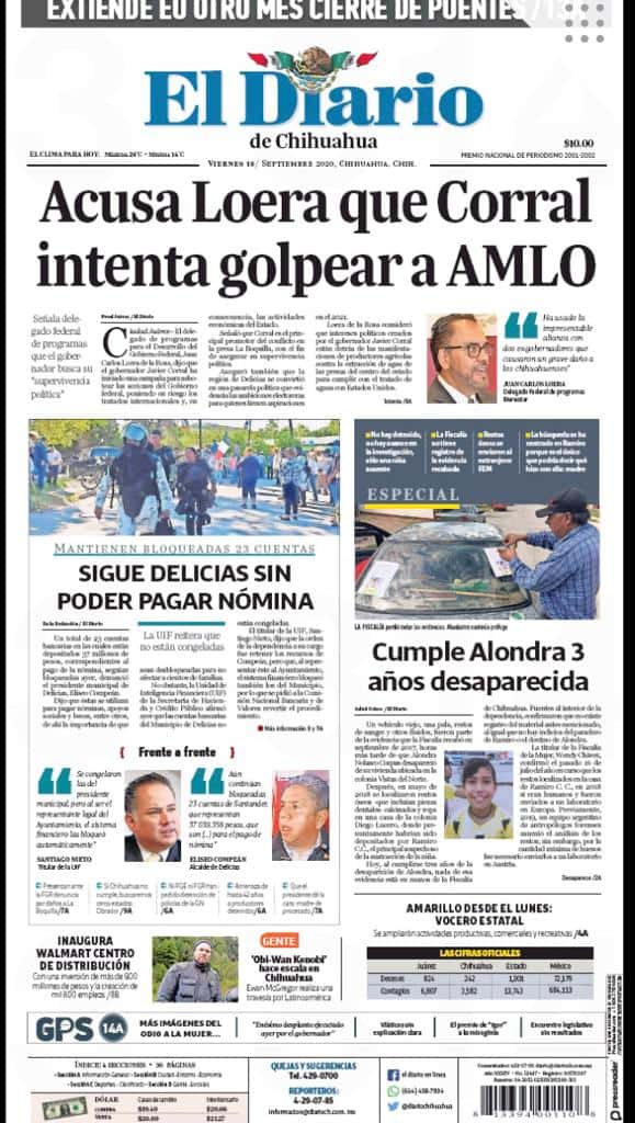 Portadas y Columnas políticas de hoyPrimeras planas locales 18 de septiembre 2020 18 septiembre, 20200445FacebookTwitterWhatsAppEmail