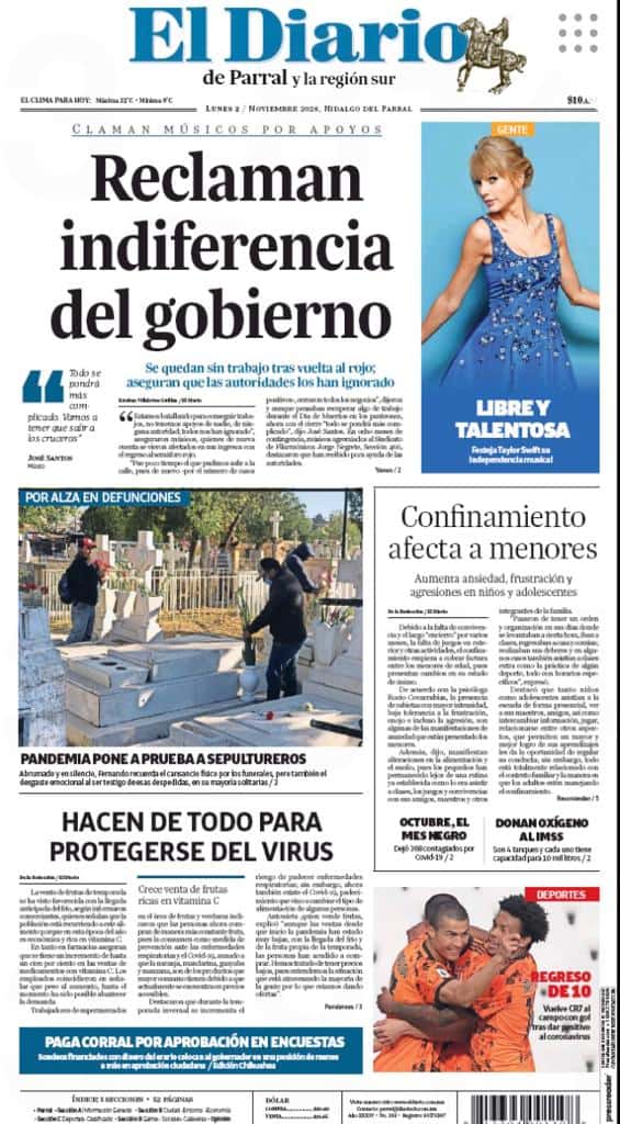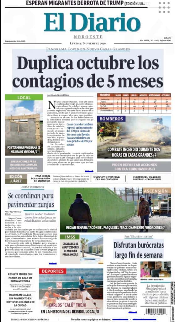 Portadas y Columnas políticas de hoyPrimeras planas locales / 2 de noviembre 2020 2 noviembre, 20200420FacebookTwitterWhatsAppEmail