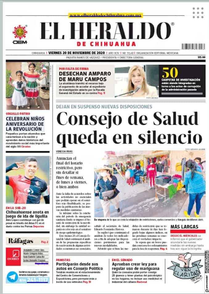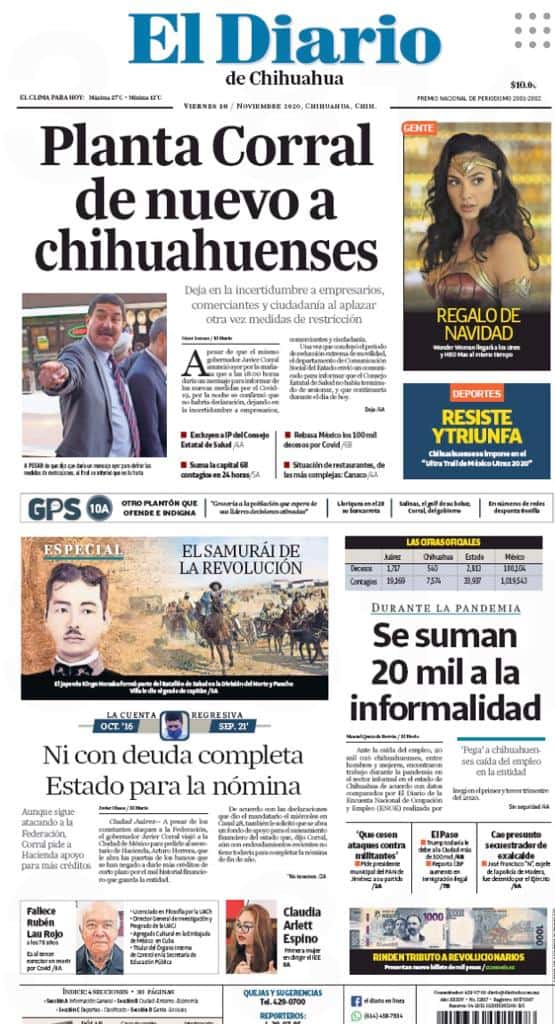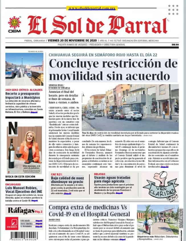 Portadas y Columnas políticas de hoyPrimeras planas locales / 20 de noviembre 2020 20 noviembre, 20200488FacebookTwitterWhatsAppEmail