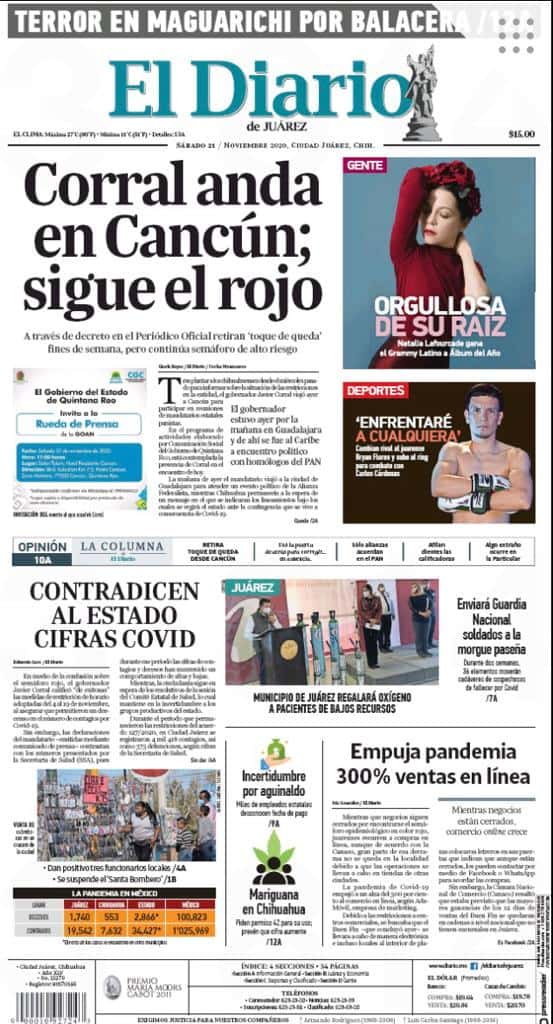 Portadas y Columnas políticas de hoyPrimeras planas locales / 21 de noviembre 2020 21 noviembre, 20200420FacebookTwitterWhatsAppEmail