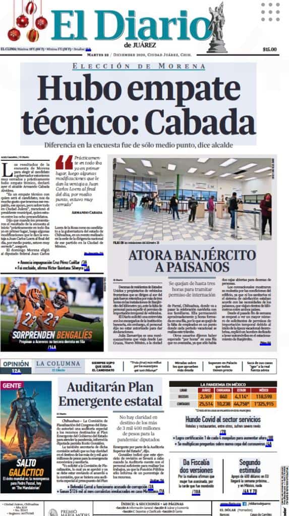 Portadas y Columnas políticas de hoyPrimeras planas locales / 22 de diciembre 2020 22 diciembre, 20200403FacebookTwitterWhatsAppEmail