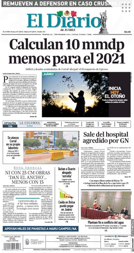 Portadas y Columnas políticas de hoyPrimeras planas locales / 22 de septiembre 2020 22 septiembre, 20200413FacebookTwitterWhatsAppEmail