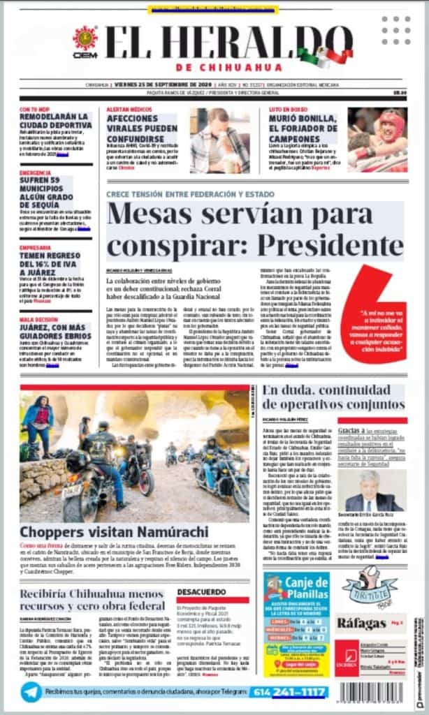 Portadas y Columnas políticas de hoyPrimeras planas locales / 25 de septiembre 2020 25 septiembre, 20200446FacebookTwitterWhatsAppEmail