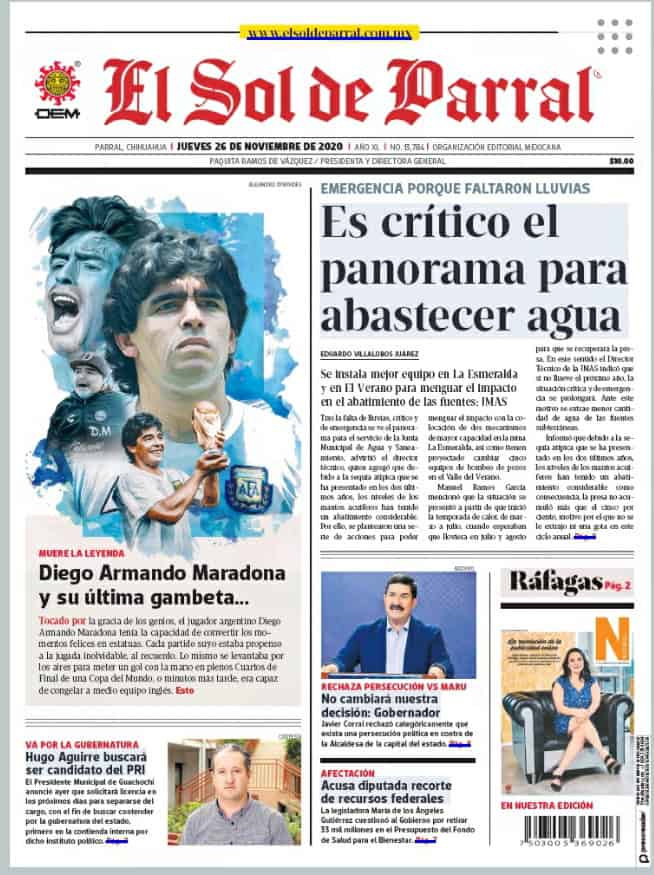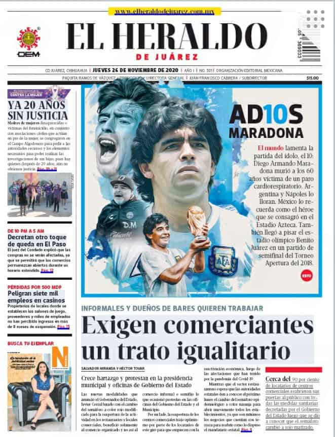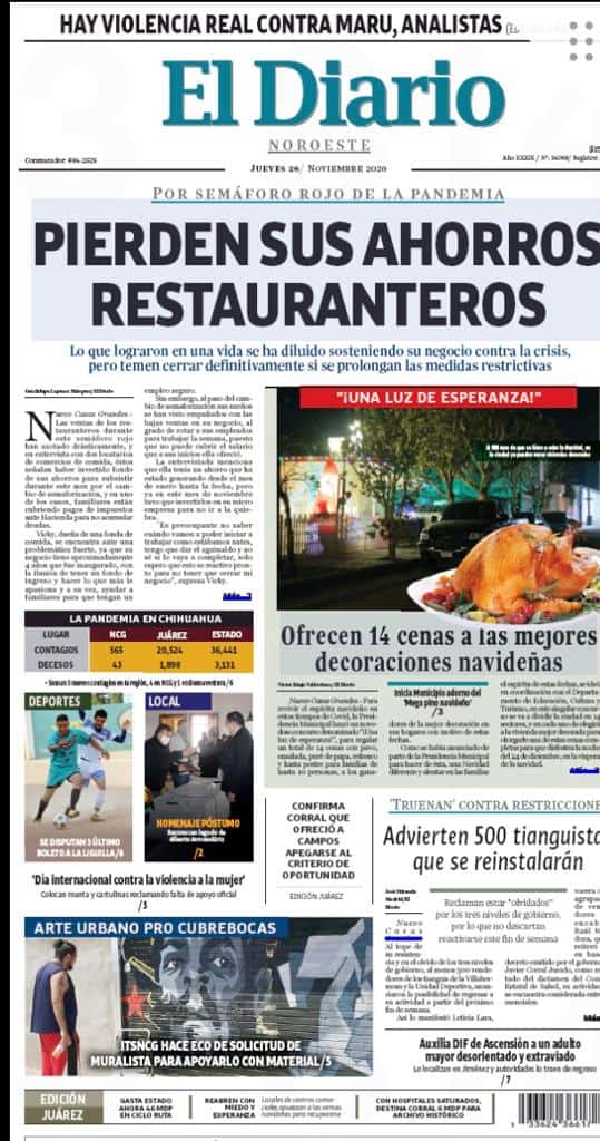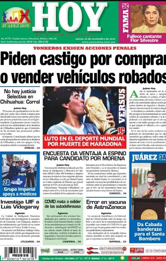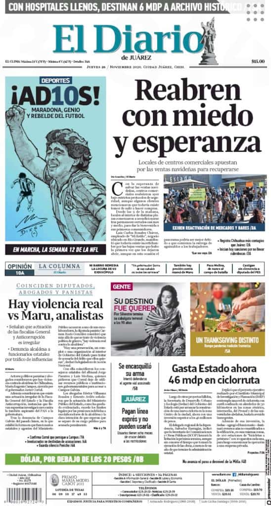 Portadas y Columnas políticas de hoy Primeras planas locales / 26 de noviembre 2020 26 noviembre, 2020 0 466 FacebookTwitterWhatsAppEmail