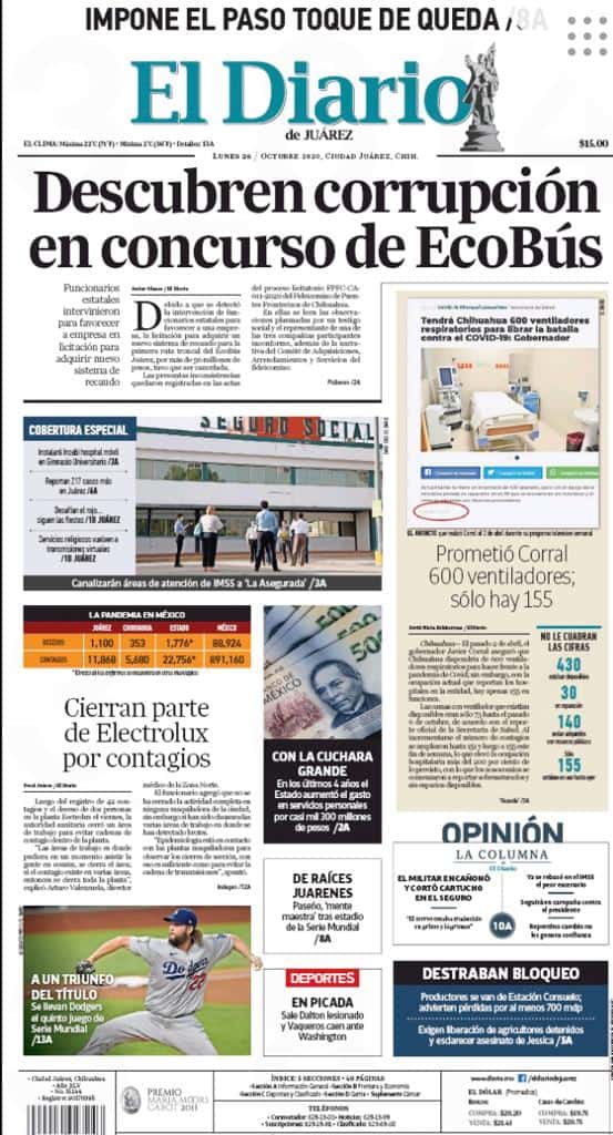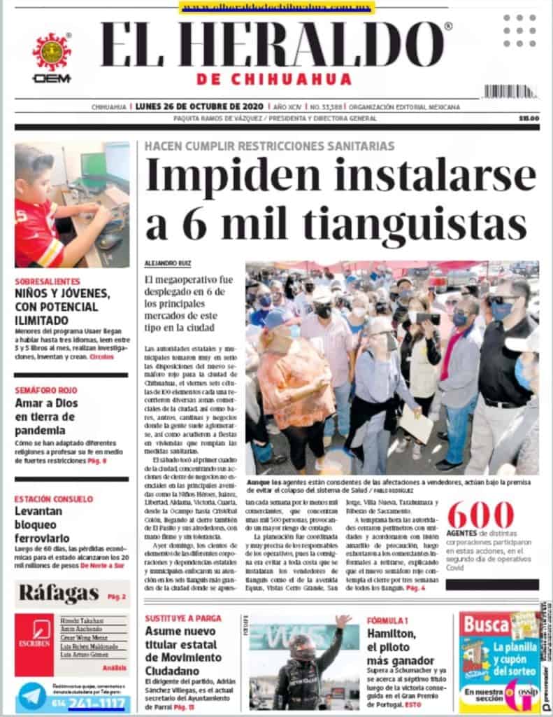 Portadas y Columnas políticas de hoy Primeras planas locales / 26 de octubre 2020 26 octubre, 2020 0 457 FacebookTwitterWhatsAppEmail