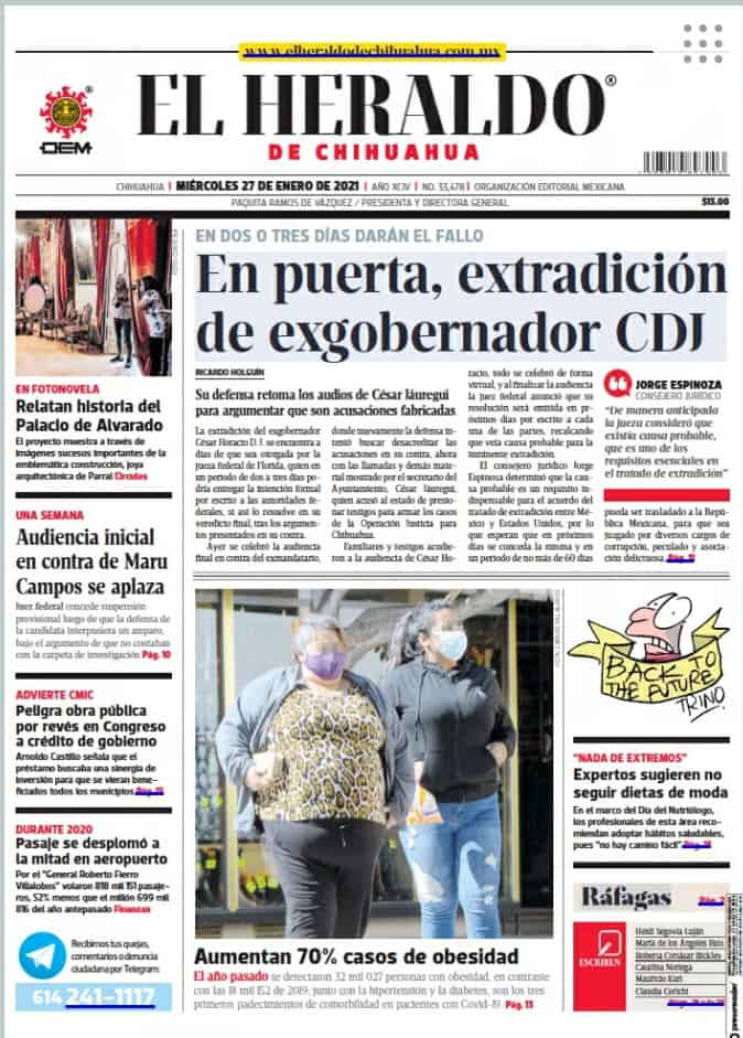 Portadas y Columnas políticas de hoy Primeras planas locales / 27 de enero 2021 27 enero, 2021 0 548 FacebookTwitterWhatsAppEmail
