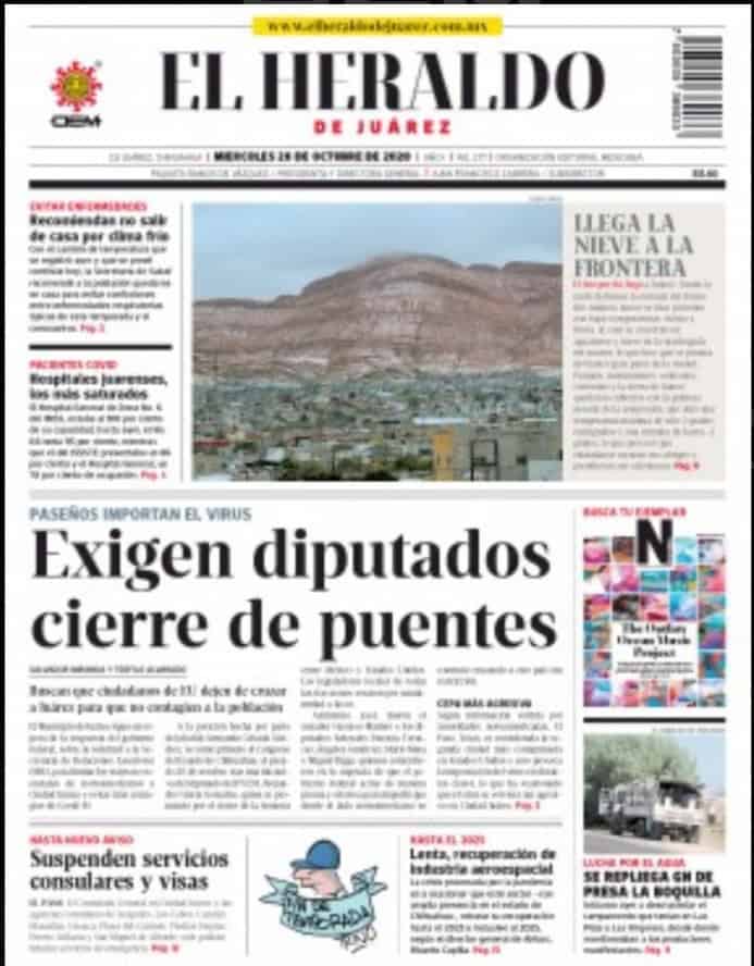 Portadas y Columnas políticas de hoy Primeras planas locales / 28 de octubre 2020 28 octubre, 2020 0 478 FacebookTwitterWhatsAppEmail
