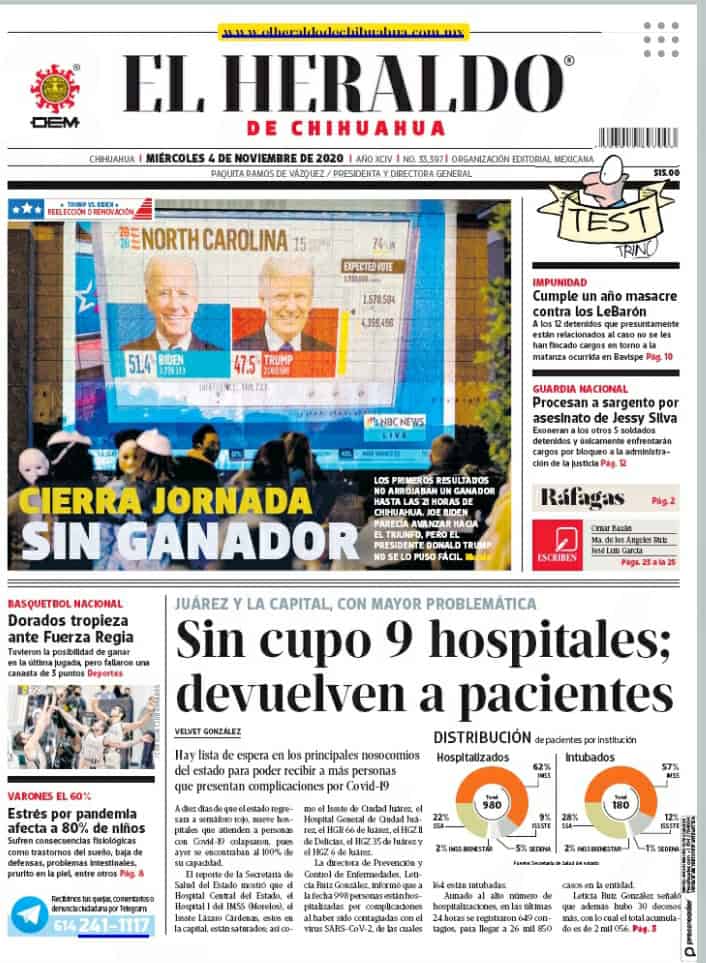 Primeras planas locales / 4 de noviembre 2020