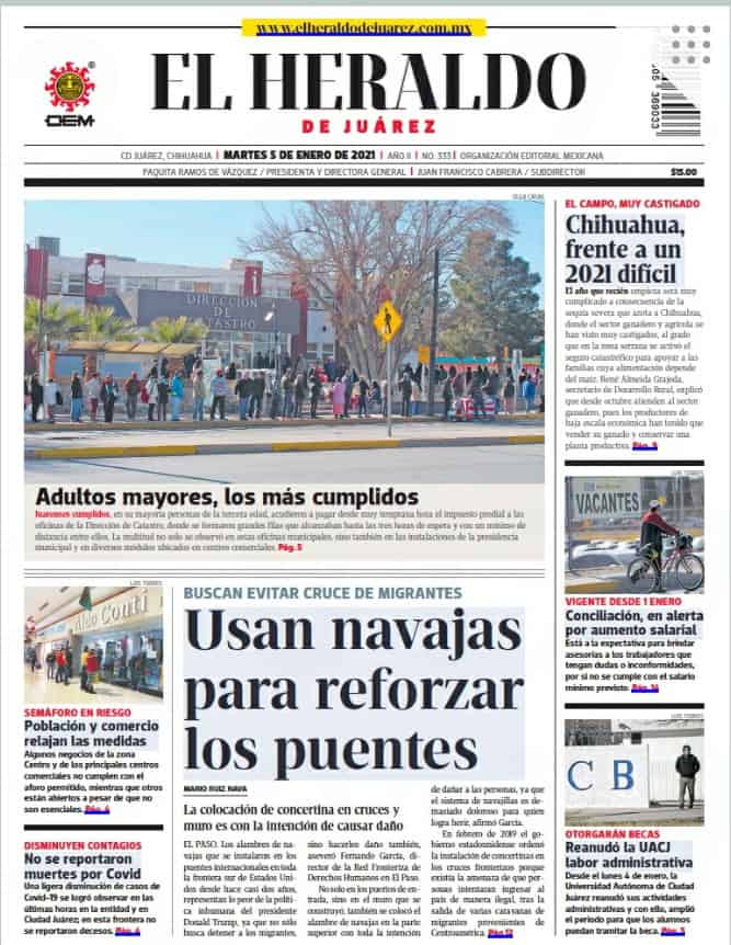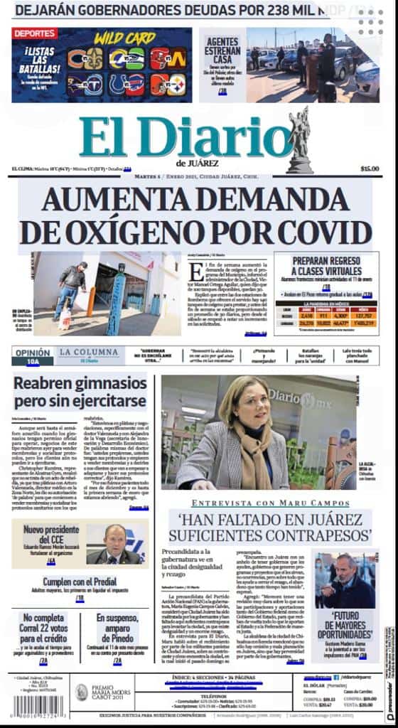 Portadas y Columnas políticas de hoy Primeras planas locales / 5 de enero 2021 5 enero, 2021 0 492 FacebookTwitterWhatsAppEmail