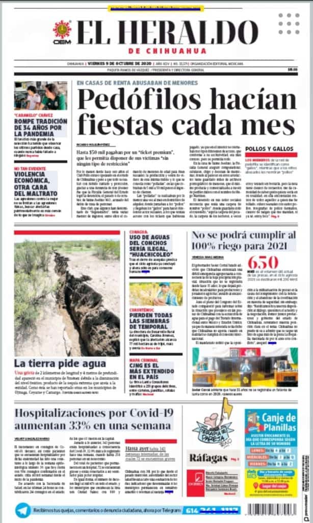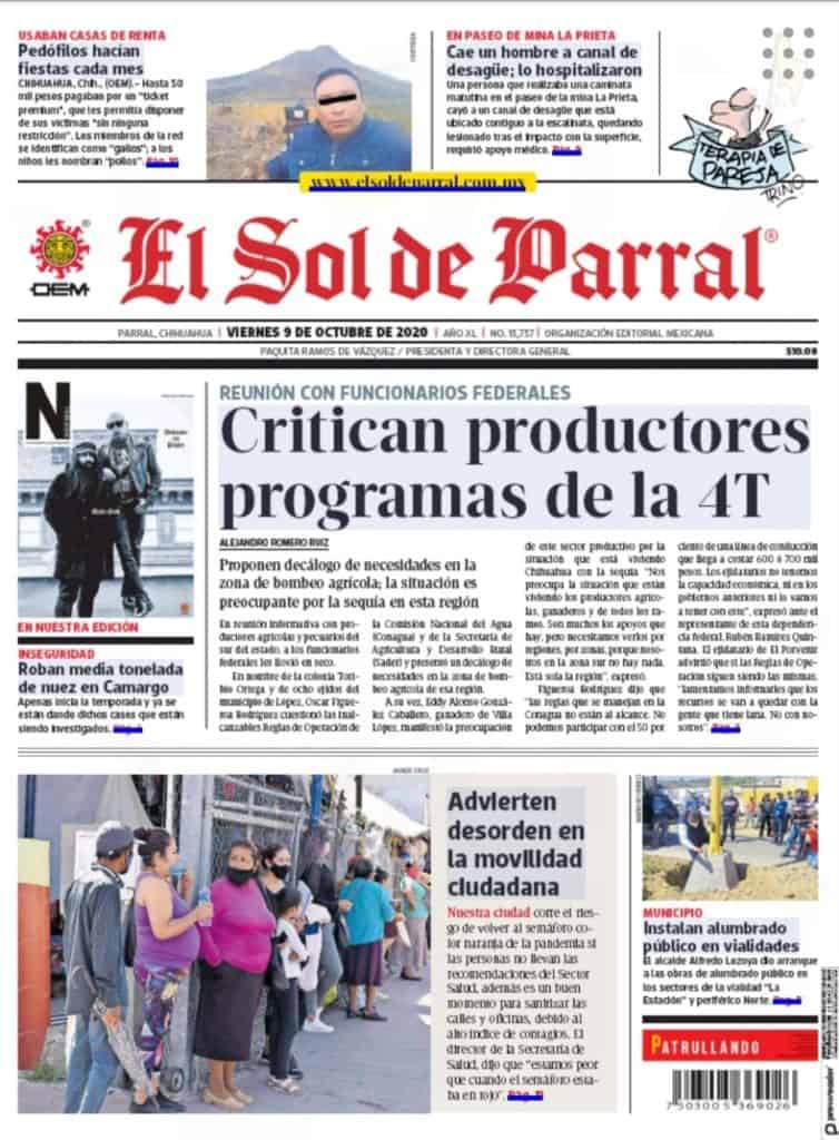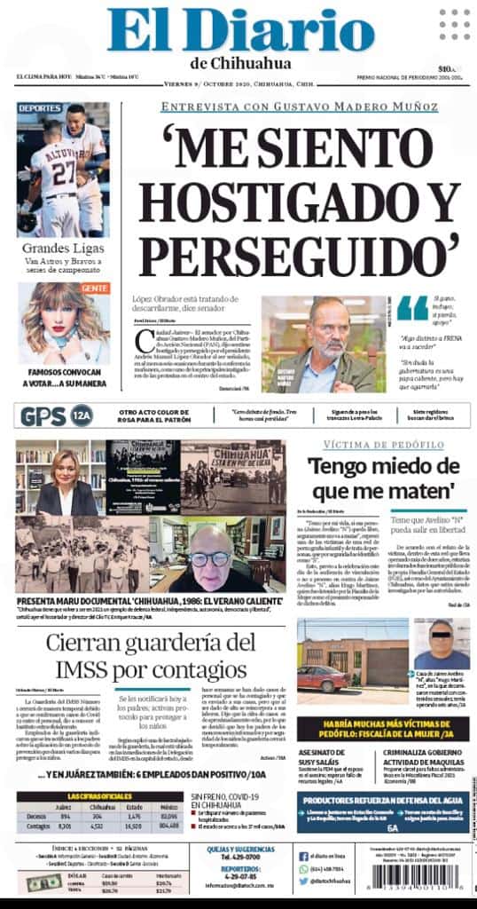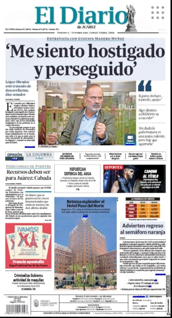Portadas y Columnas políticas de hoy Primeras planas locales 9 de octubre 2020 9 octubre, 2020 0 472 FacebookTwitterWhatsAppEmail