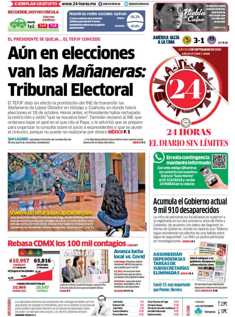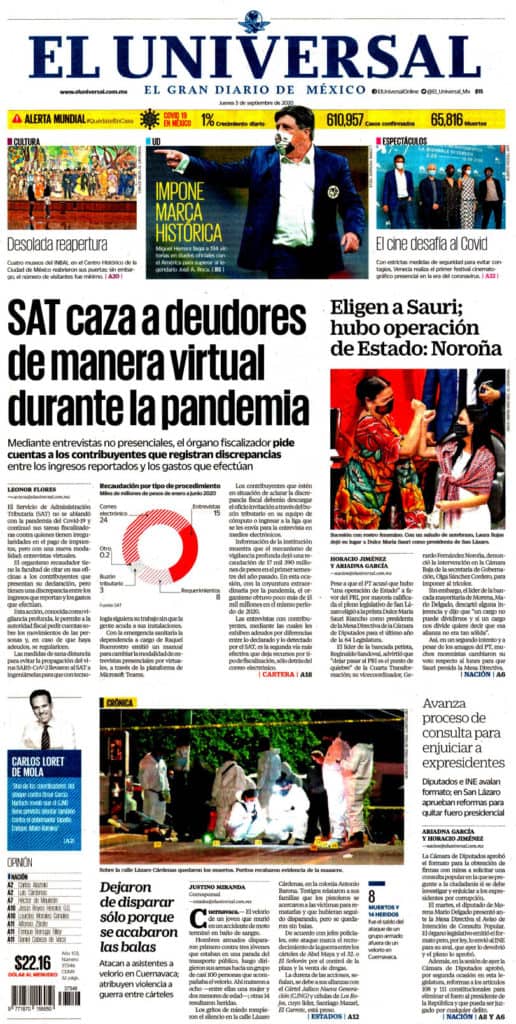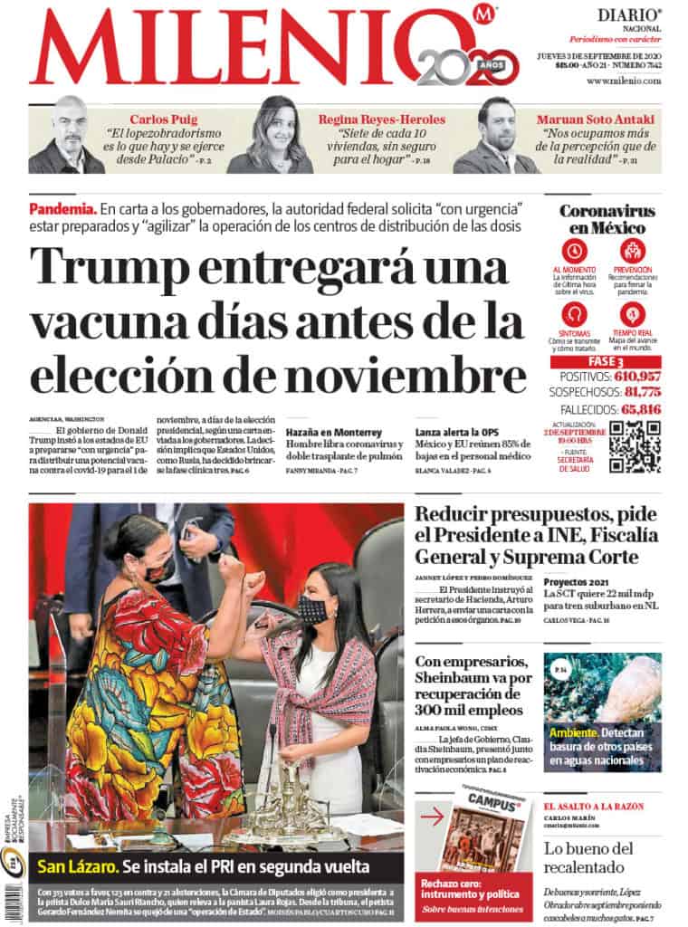 Portadas y Columnas políticas de hoy Primeras planas nacionales / 03 de septiembre 2020 3 septiembre, 2020 0 472 FacebookTwitterWhatsAppEmail