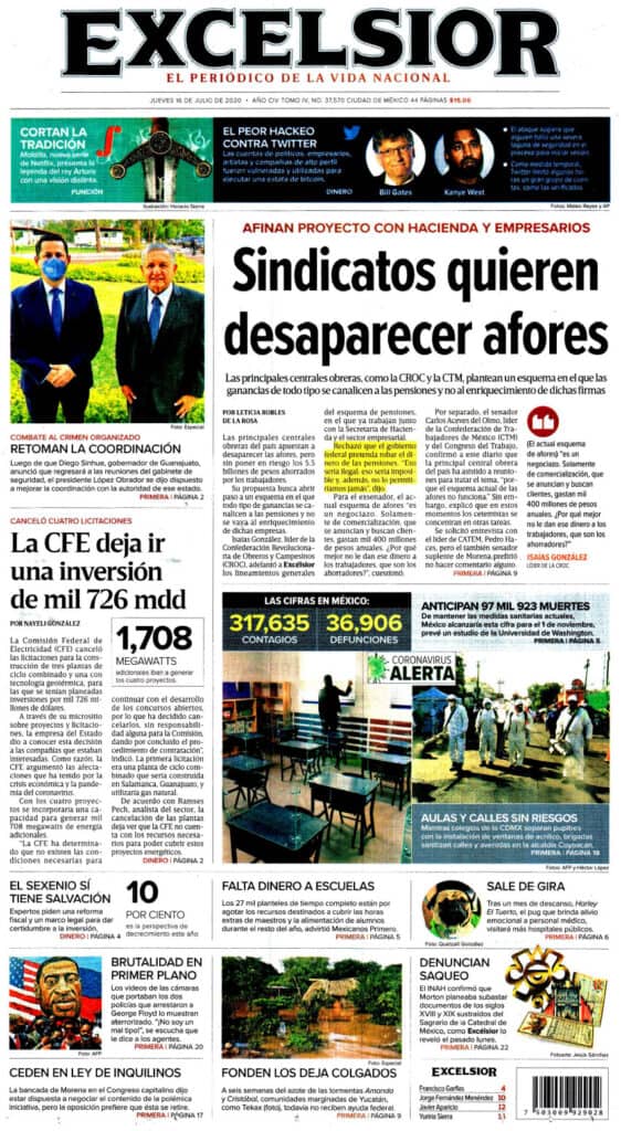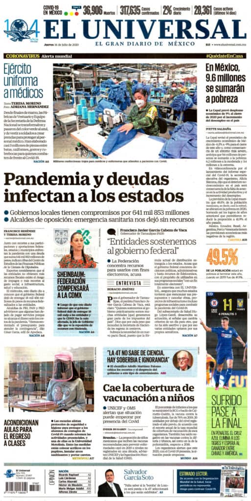 Primeras planas nacionales / 16 de julio 2020