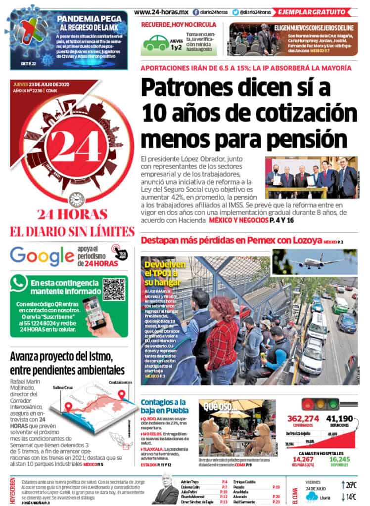 Portadas y Columnas políticas de hoyPrimeras planas nacionales / 23 de julio 2020 23 julio, 20200486FacebookTwitterWhatsAppEmail