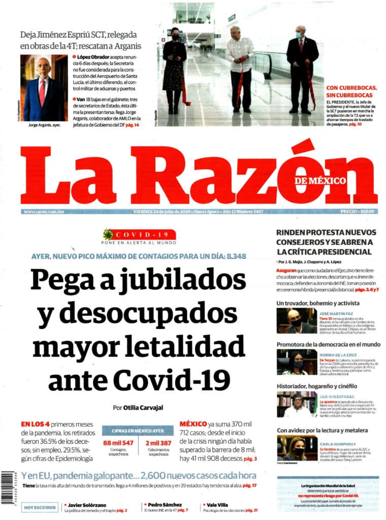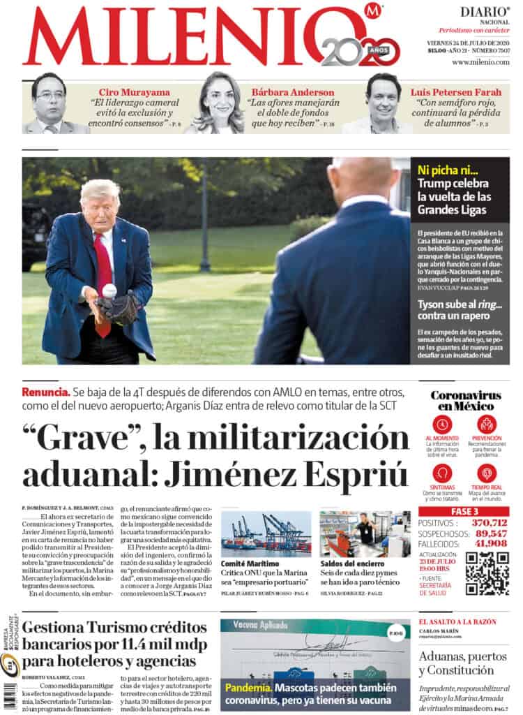 Portadas y Columnas políticas de hoyPrimeras planas nacionales / 24 de julio 2020 24 julio, 20200664FacebookTwitterWhatsAppEmail