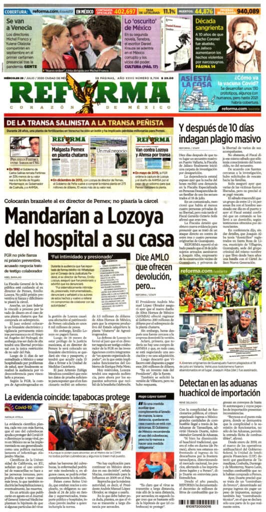 Portadas y Columnas políticas de hoyPrimeras planas nacionales / 29 de julio 2020 29 julio, 20200468FacebookTwitterWhatsAppEmail