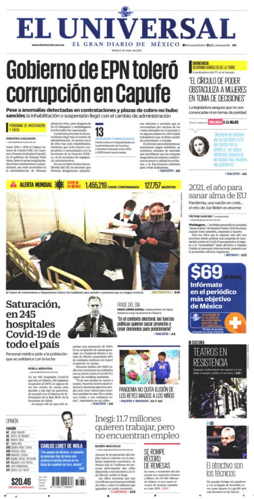 Portadas y Columnas políticas de hoy Primeras planas nacionales / 5 de enero 2021 5 enero, 2021 0 675 FacebookTwitterWhatsAppEmail