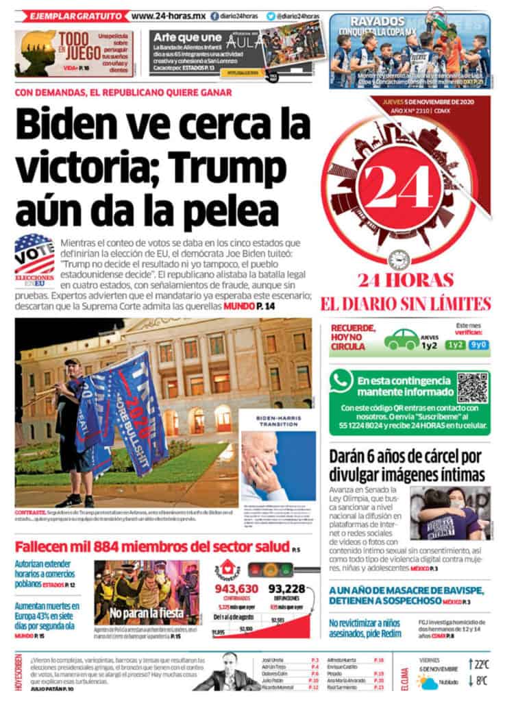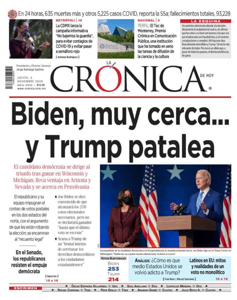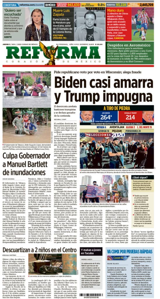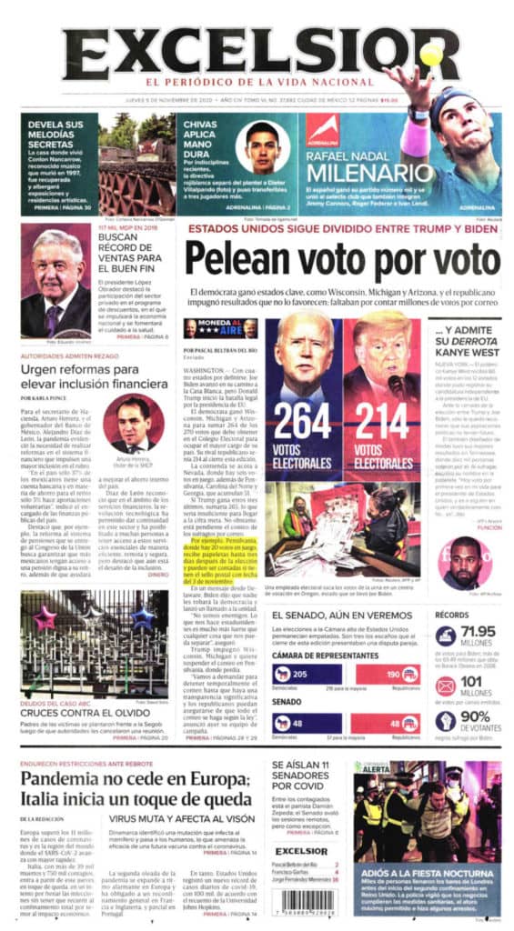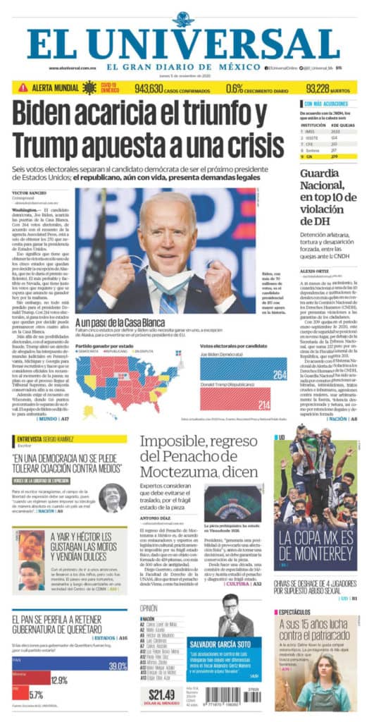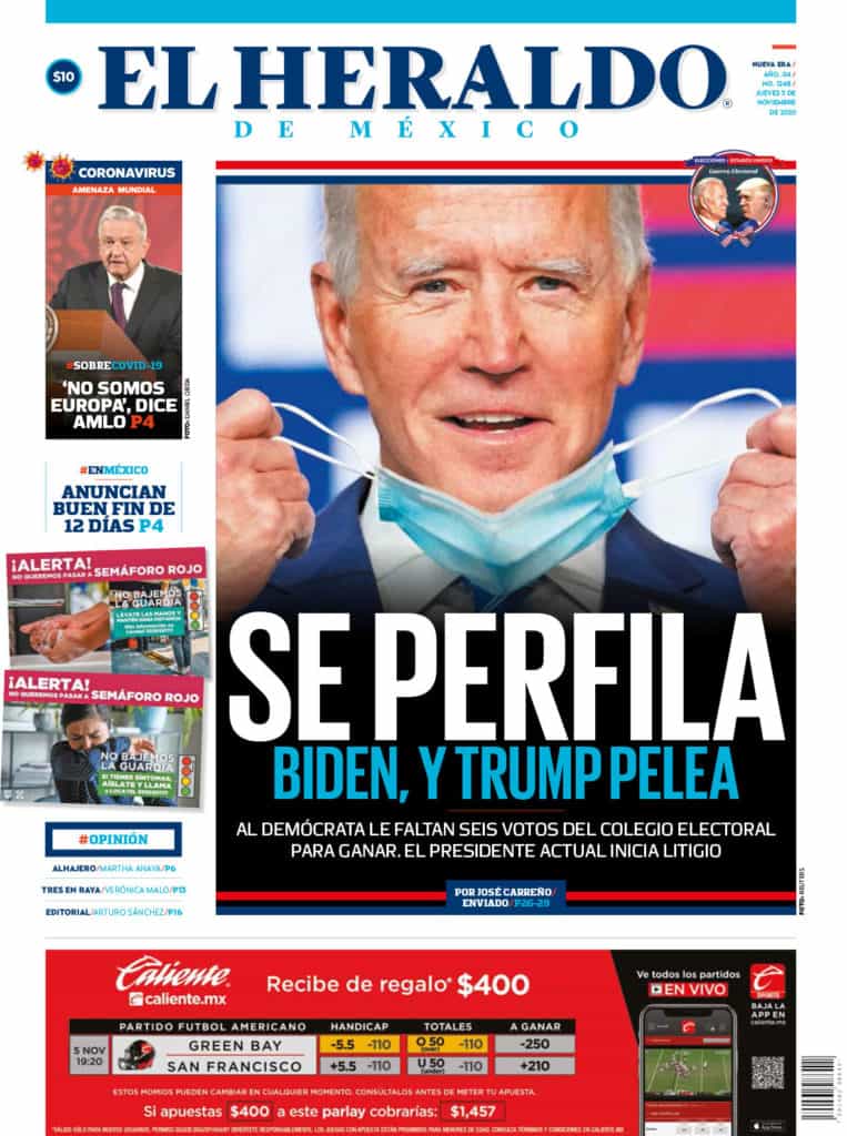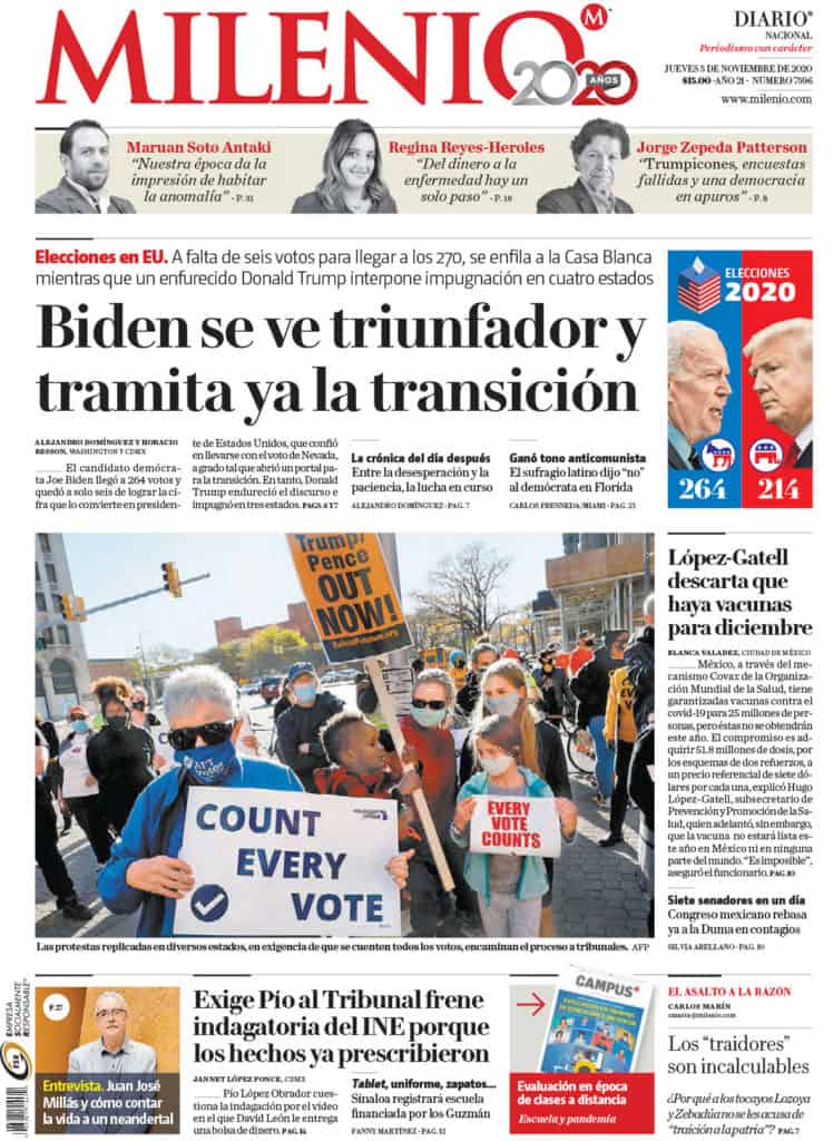 Portadas y Columnas políticas de hoyPrimeras planas nacionales / 5 de noviembre 2020 5 noviembre, 20200464FacebookTwitterWhatsAppEmail