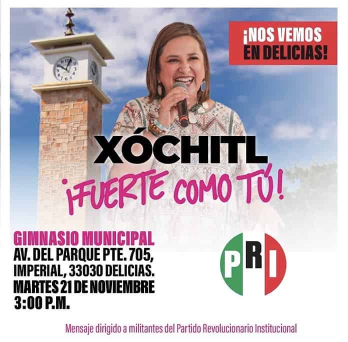 Será en el Gimnasio Municipal, ubicado en la avenida Del Parque, en punto de las 3 de la tarde, donde dará un mensaje dirigido a militantes del Partido Revolucionario Institucional (PRI).
