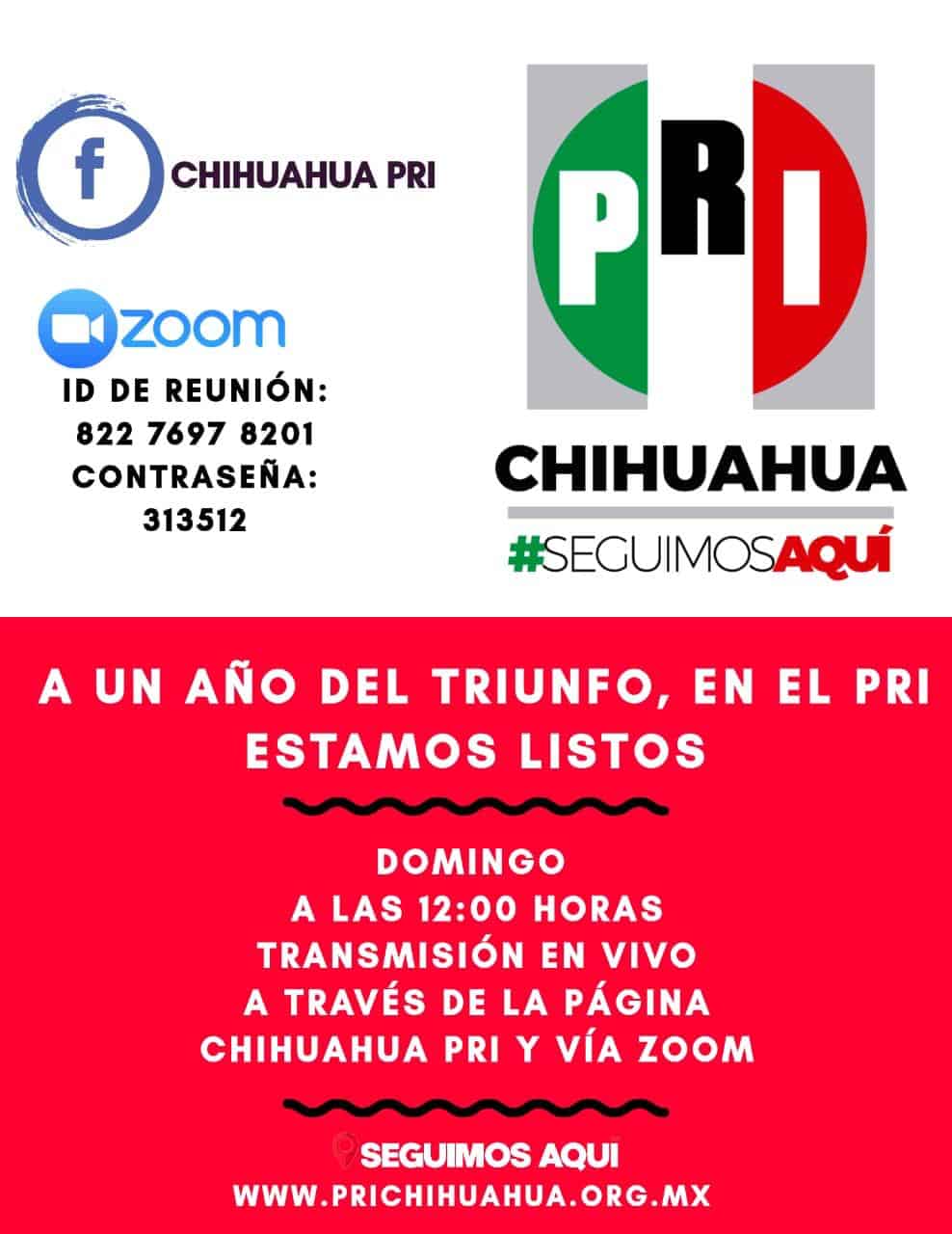 ComunicadosA un año del triunfo, en el PRI estamos listos 7 junio, 20200684FacebookTwitterWhatsAppEmail Participa este domingo a las 12 del día en nuestra transmisión especial a través de chihuahua PRI por facebook.