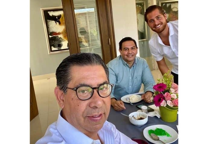 “Aquí comiendo con mis buenos Amigos de Grupo TOMZA!! Tomas Zaragoza Padre e Hijo!!”, publicó el morenista, en selfie con los referidos.