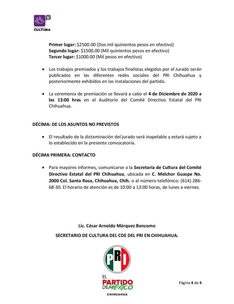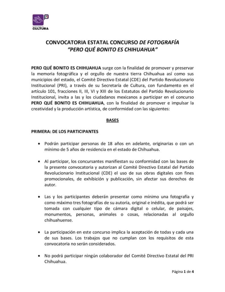 ComunicadosEl Comité Directivo Estatal del PRI invita al 1er concurso de fotografía que bonito es Chihuahua 16 octubre, 20200823FacebookTwitterWhatsAppEmail
