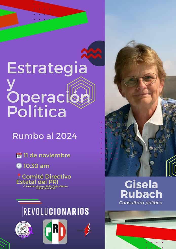 El ONMPRI invita su militancia y simpatizantes al curso de Estrategia y Operacion Politica rumbo al 2024, impartido por la experta Consultora Politica Gisela Rubach.