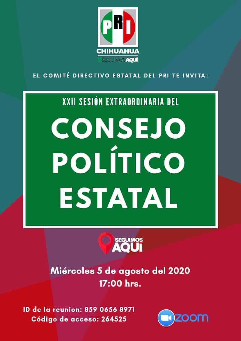ComunicadosNoticias El PRI te invita a XXII sesión extraordinaria del Consejo político Estatal 4 agosto, 2020 0 732 FacebookTwitterWhatsAppEmail