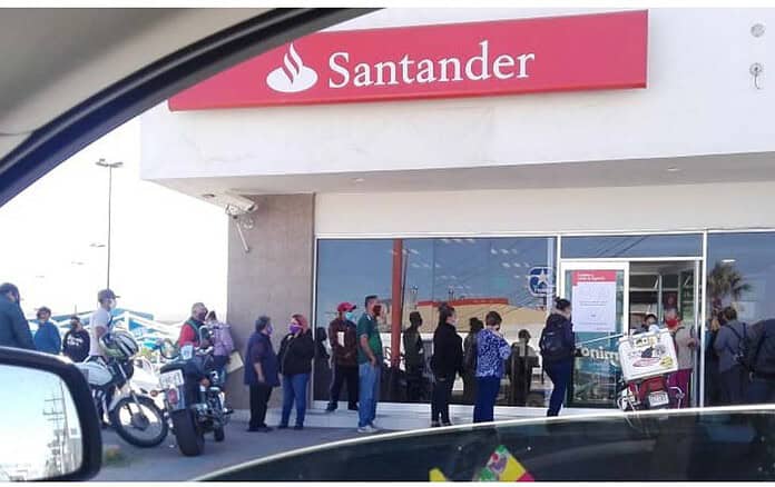 Será un segundo fin de semana largo, muy largo. La imagen que le presentamos es de uno de los bancos y las largas filas al exterior.