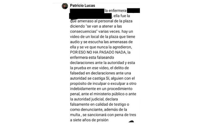 Veamos por las que tuvo qué pasar “Martha”, sólo como botón de muestra. En una cuenta de Face claramente con nombre ficticio alguien escribió que la “enfermera está falseando declaraciones ante la autoridad… el delito de falsedad en declaraciones ante una autoridad se castiga. Si alguien, con el propósito de inculpar o exculpar a otro indebidamente en un procedimiento penal, ante el Ministerio Público o ante la autoridad judicial declara falsamente en calidad de testigo o como denunciante, además de la multa, se sancionará con pena de tres a siete años de prisión”.