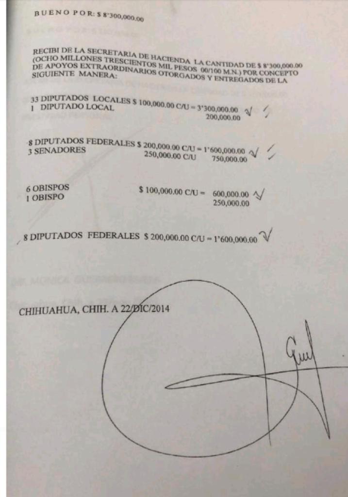 Entre los supuestos beneficiados por esa cantidad aparecen 33 diputados locales, ocho diputados federales, tres senadores… ¡y seis obispos!