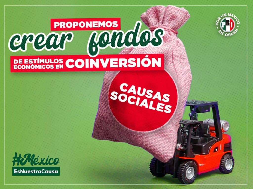 Asimismo, el PRI busca reformar la legislación de fomento a las OSC, a fin de garantizar que los recursos con los que cuenten sean para atender sus causas y a la población a la que apoyan, así como crear Fondos de Estímulos Económicos en Coinversión con los gobiernos, mediante la asignación de recursos públicos federales y estatales, destinándolos a las causas sociales.