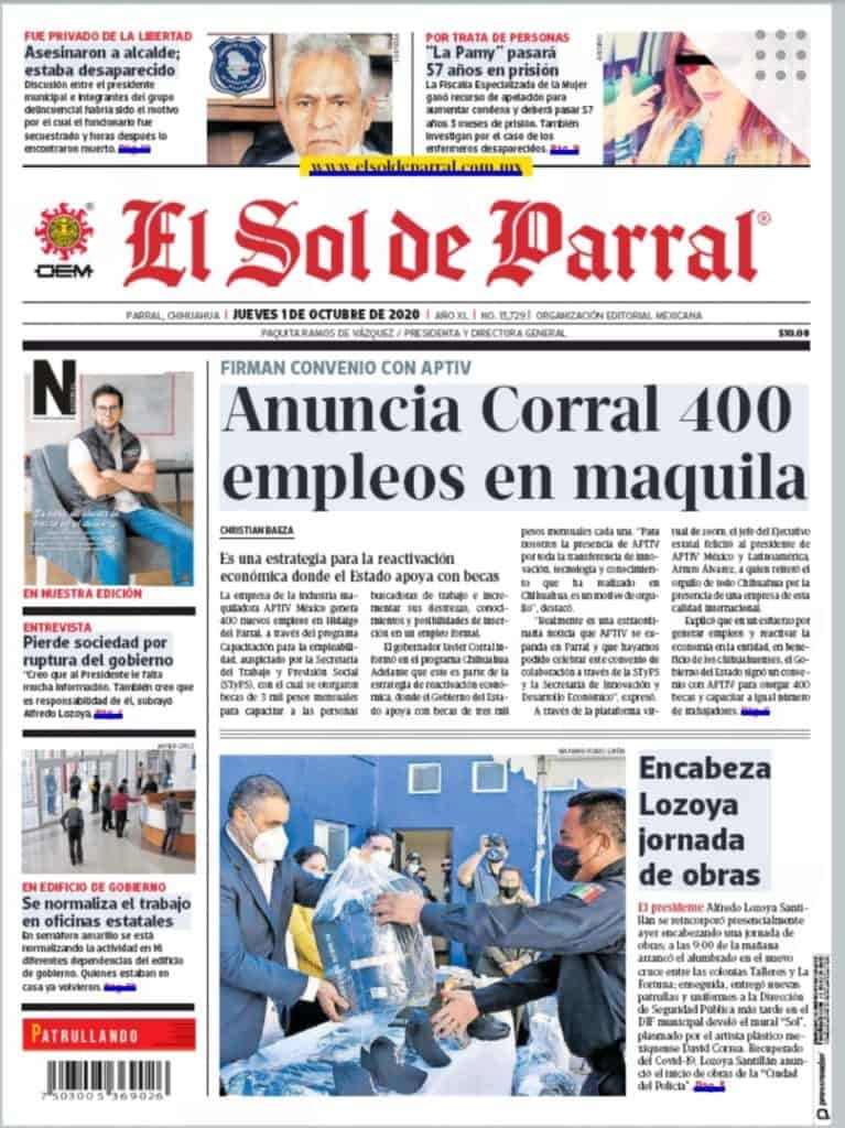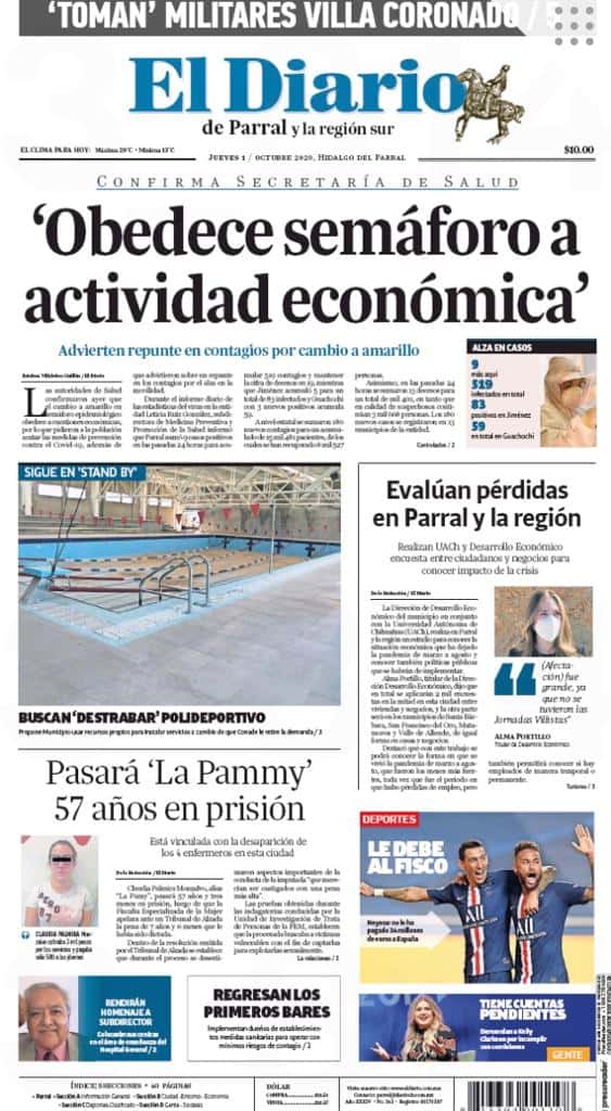 Portadas y Columnas políticas de hoyPrimeras planas locales /01 de octubre 2020 1 octubre, 20200457FacebookTwitterWhatsAppEmail