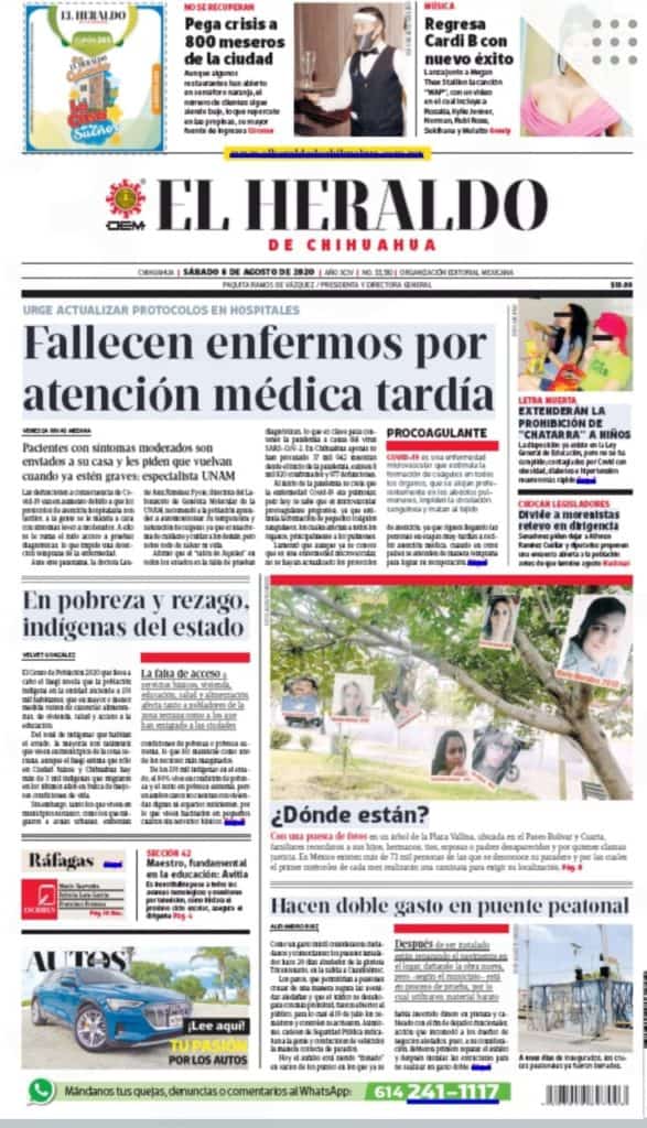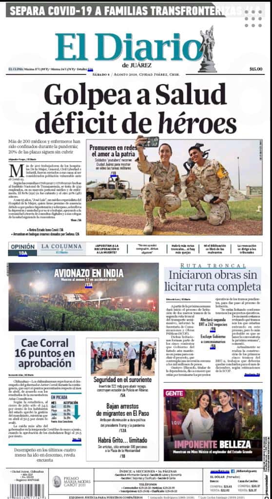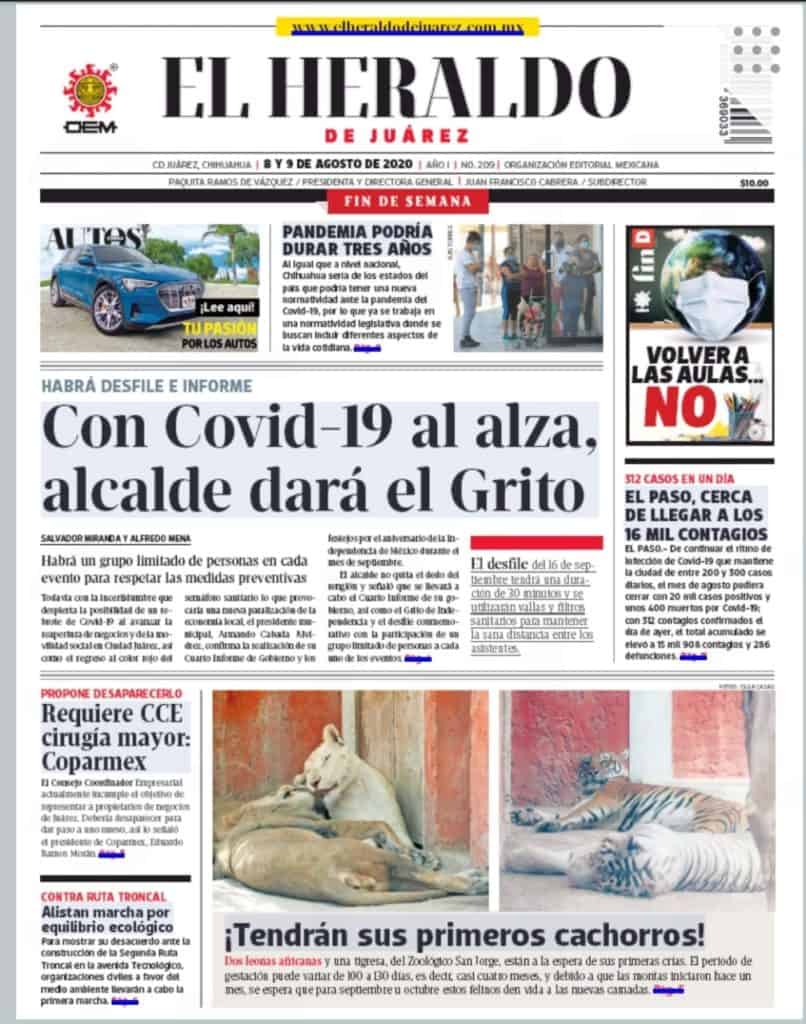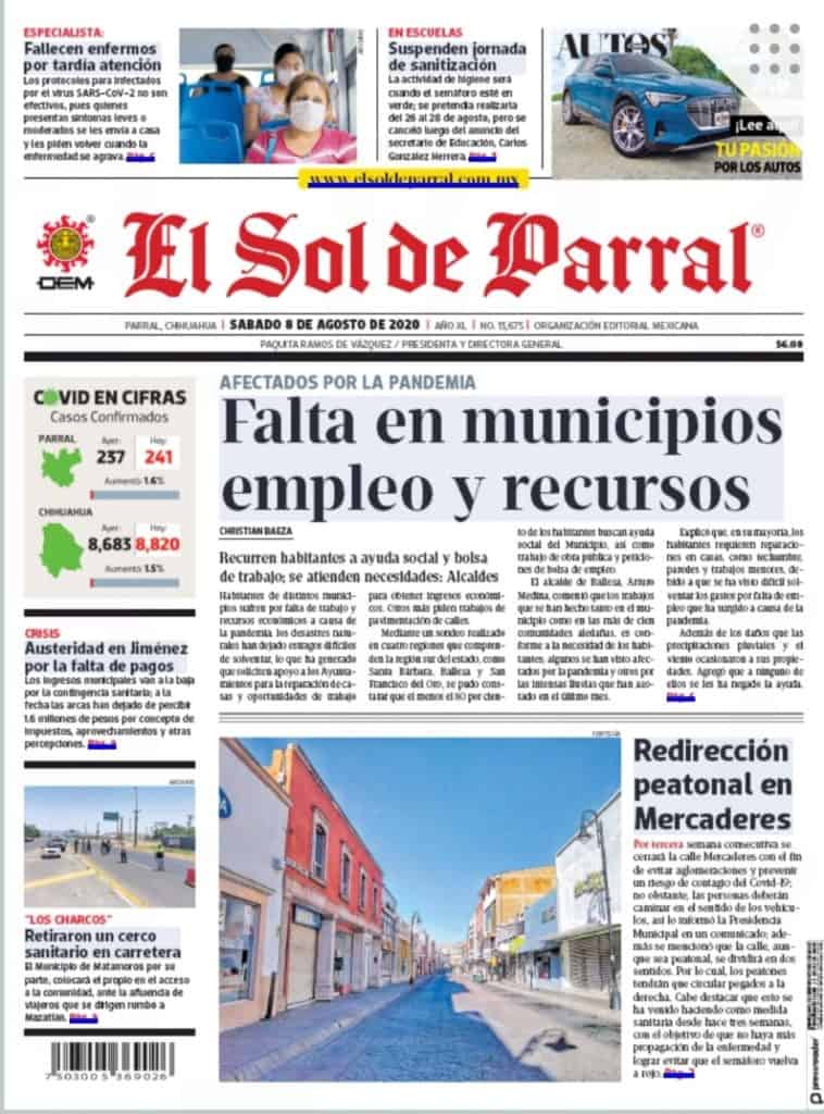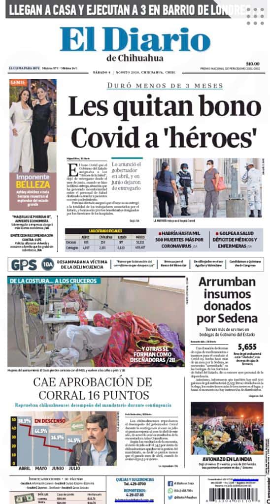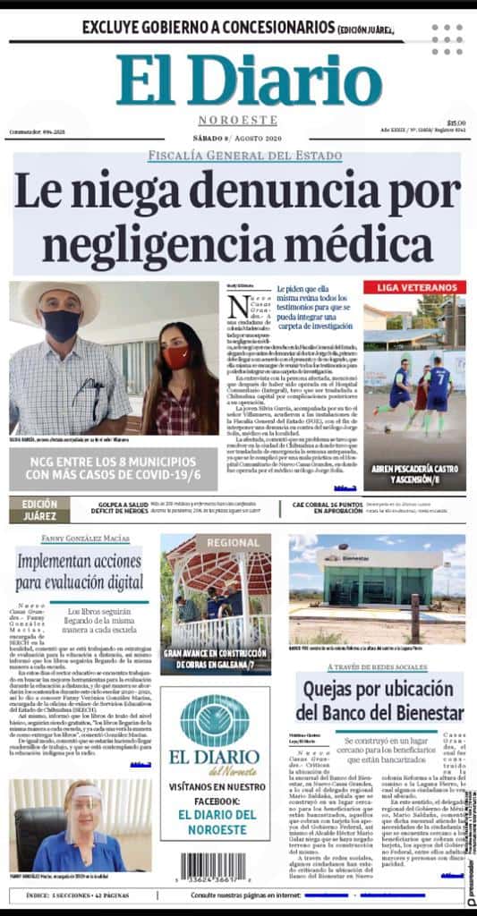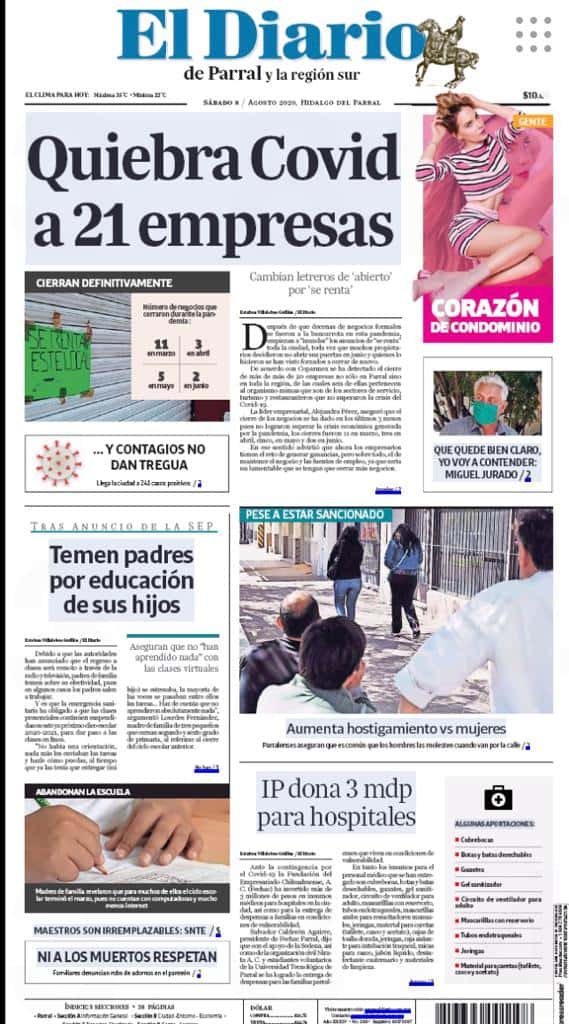 Primeras planas locales 08 de agosto 2020