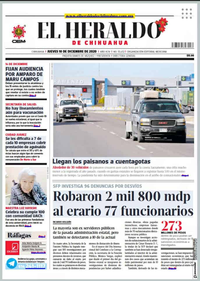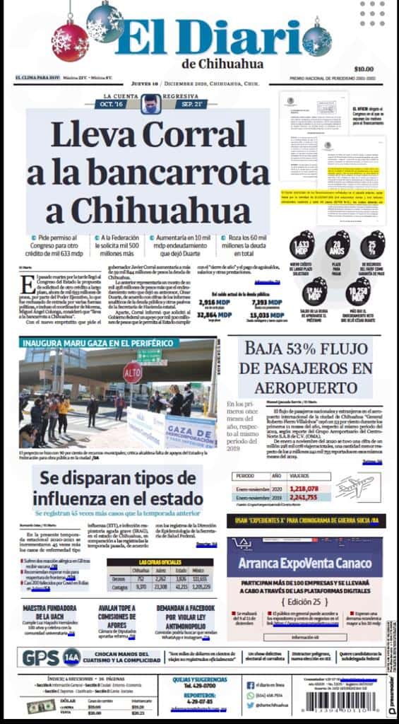 Portadas y Columnas políticas de hoyPrimeras planas locales / 10 de diciembre 2020 10 diciembre, 20200448FacebookTwitterWhatsAppEmail