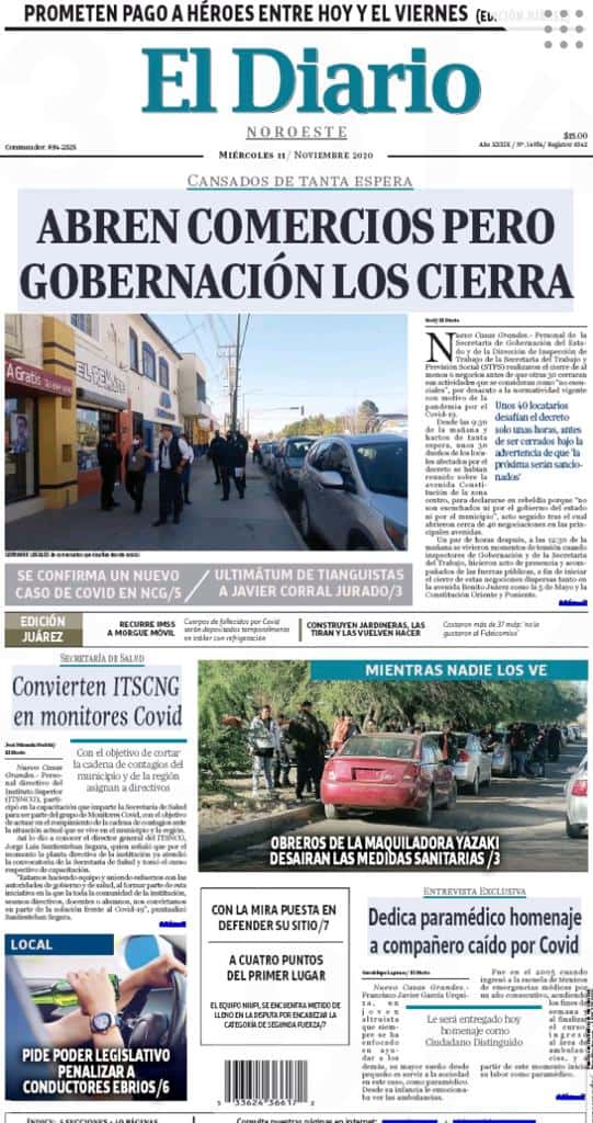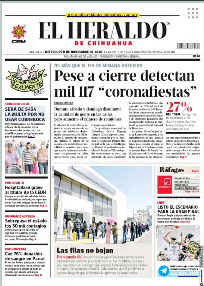 Portadas y Columnas políticas de hoyPrimeras planas locales / 11 de noviembre 2020 11 noviembre, 20200412FacebookTwitterWhatsAppEmail
