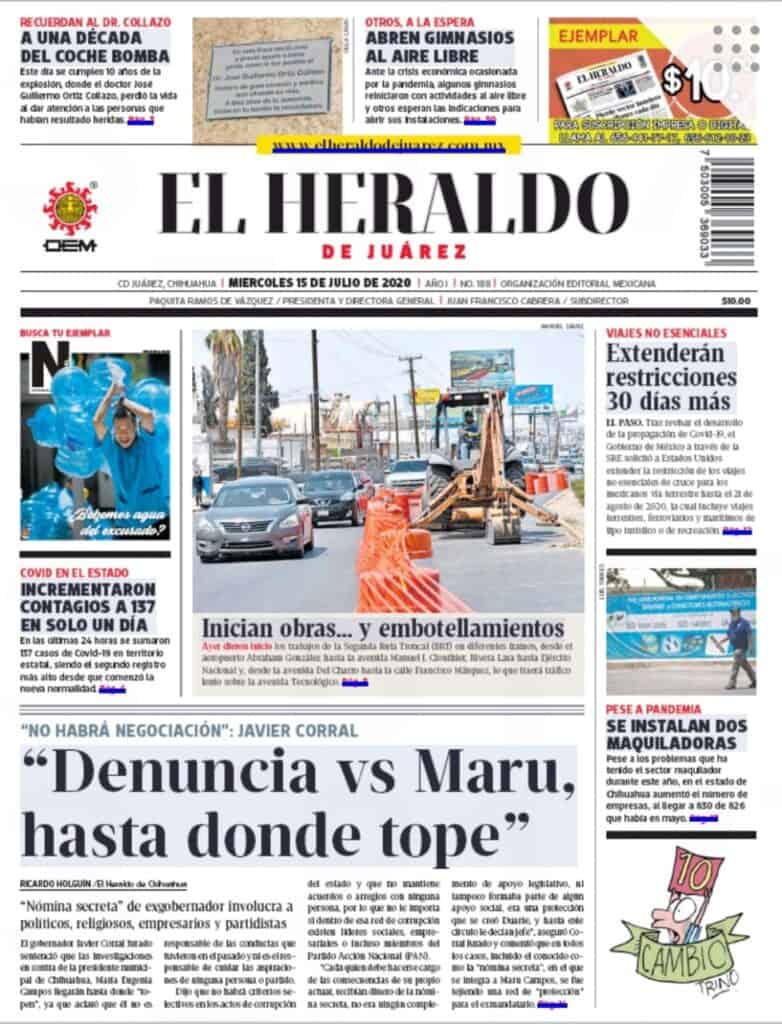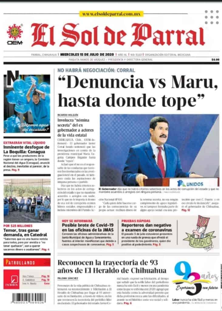 Portadas y Columnas políticas de hoyPrimeras planas locales 15 de julio 2020 15 julio, 20200418FacebookTwitterWhatsAppEmail