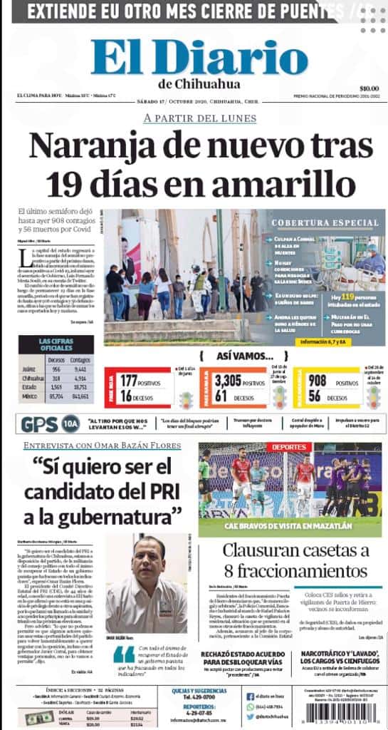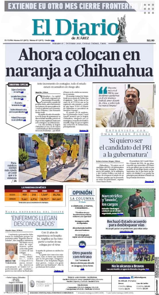 Portadas y Columnas políticas de hoyPrimeras planas locales / 17 de octubre 2020 17 octubre, 20200405FacebookTwitterWhatsAppEmail