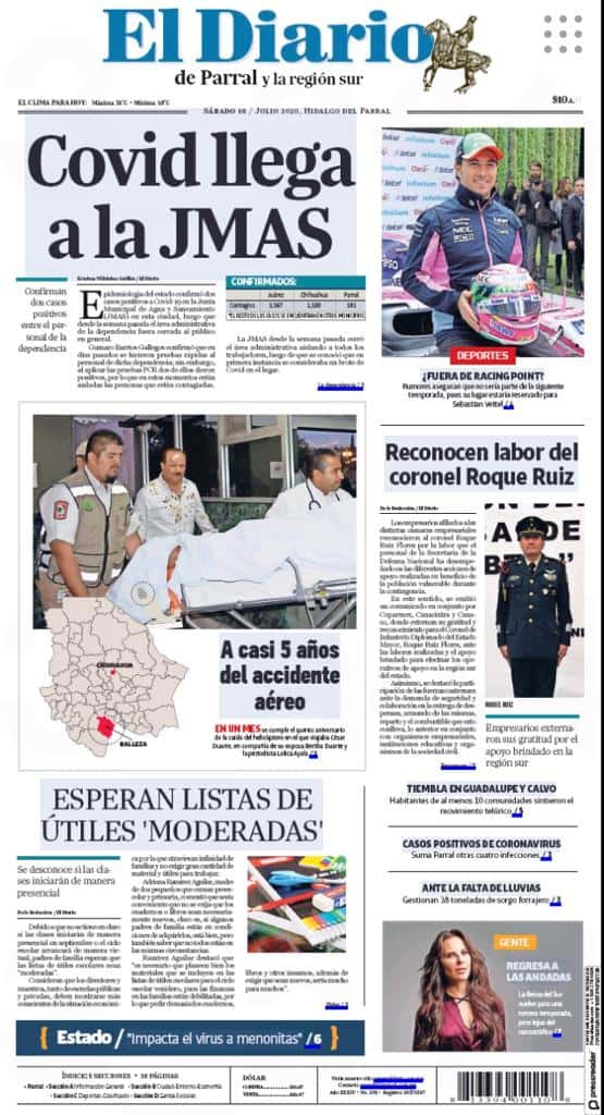 Portadas y Columnas políticas de hoyPrimeras planas locales 18 de julio 2020 18 julio, 20200441FacebookTwitterWhatsAppEmail