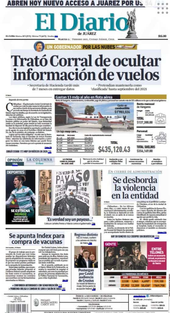 Portadas y Columnas políticas de hoy Primeras planas locales / 2 de febrero 2021 2 febrero, 2021 0 462 FacebookTwitterWhatsAppEmail
