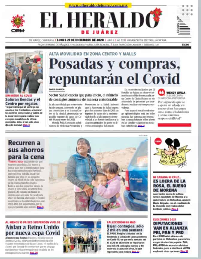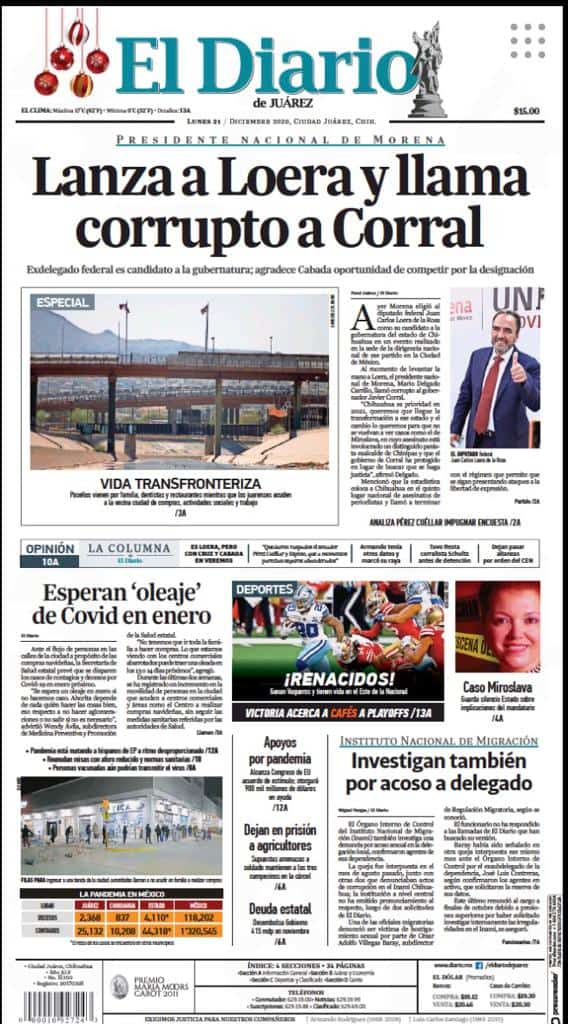 Primeras planas locales / 21 de diciembre 2020