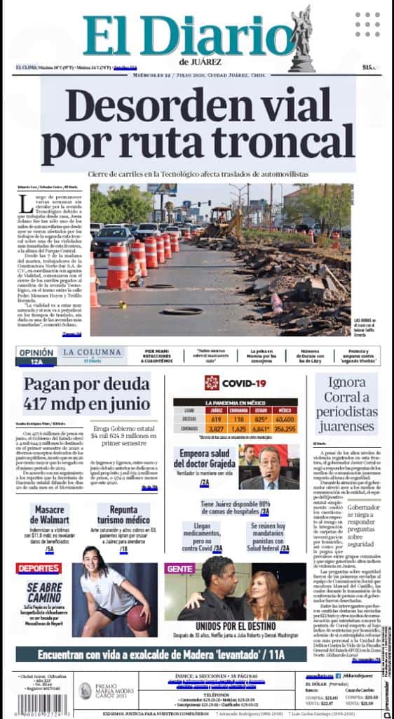 Portadas y Columnas políticas de hoyPrimeras planas locales 22 de julio 2020 22 julio, 20200468FacebookTwitterWhatsAppEmail